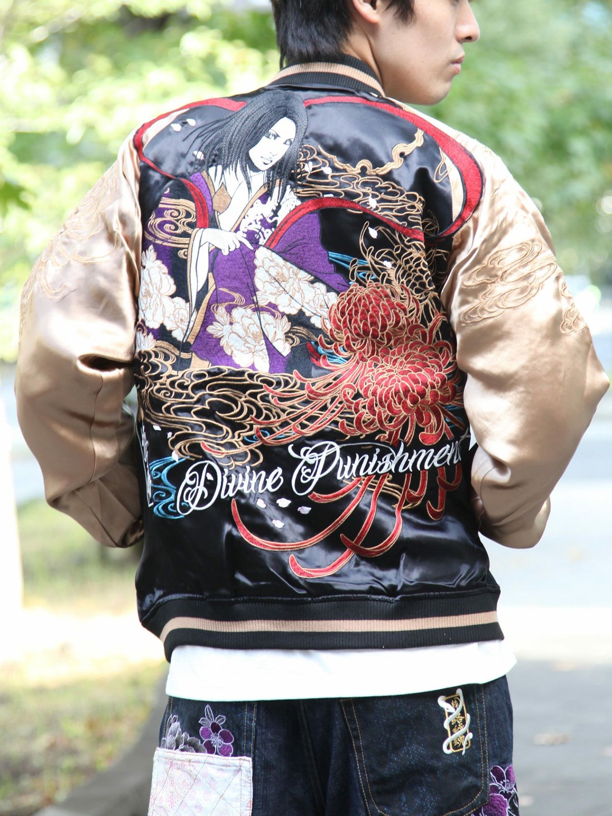 他の画像を見る ≪30%OFF≫【百花繚乱】“枝垂れ桜と舞妓”総刺繍リバーシブルスカジャン≪返品・取寄対応不可≫ 定価 ¥ 38,280 のところ ¥ 26,796 税込 【モデルサイズ:H171cm / Lサイズ着用】 カートへ追加 お気に入りに登録する