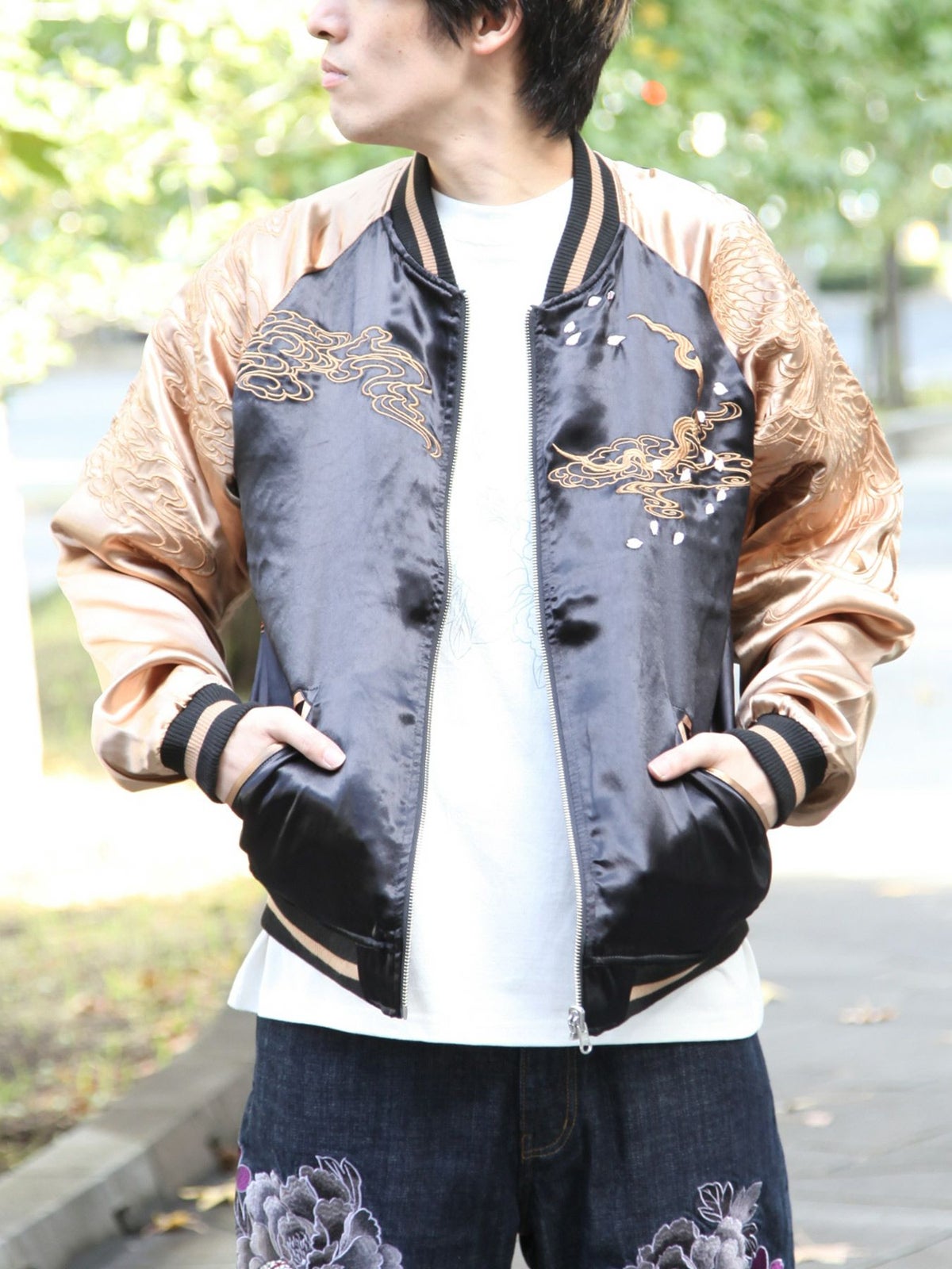 他の画像を見る ≪20%OFF≫【百花繚乱】“双鯉”総刺繍リバーシブルスカジャン≪返品・取寄対応不可≫ 定価 ¥ 39,380 のところ ¥ 31,504 税込 【モデルサイズ:H171cm / Lサイズ着用】 売切れ カートへ追加 お気に入りに登録する