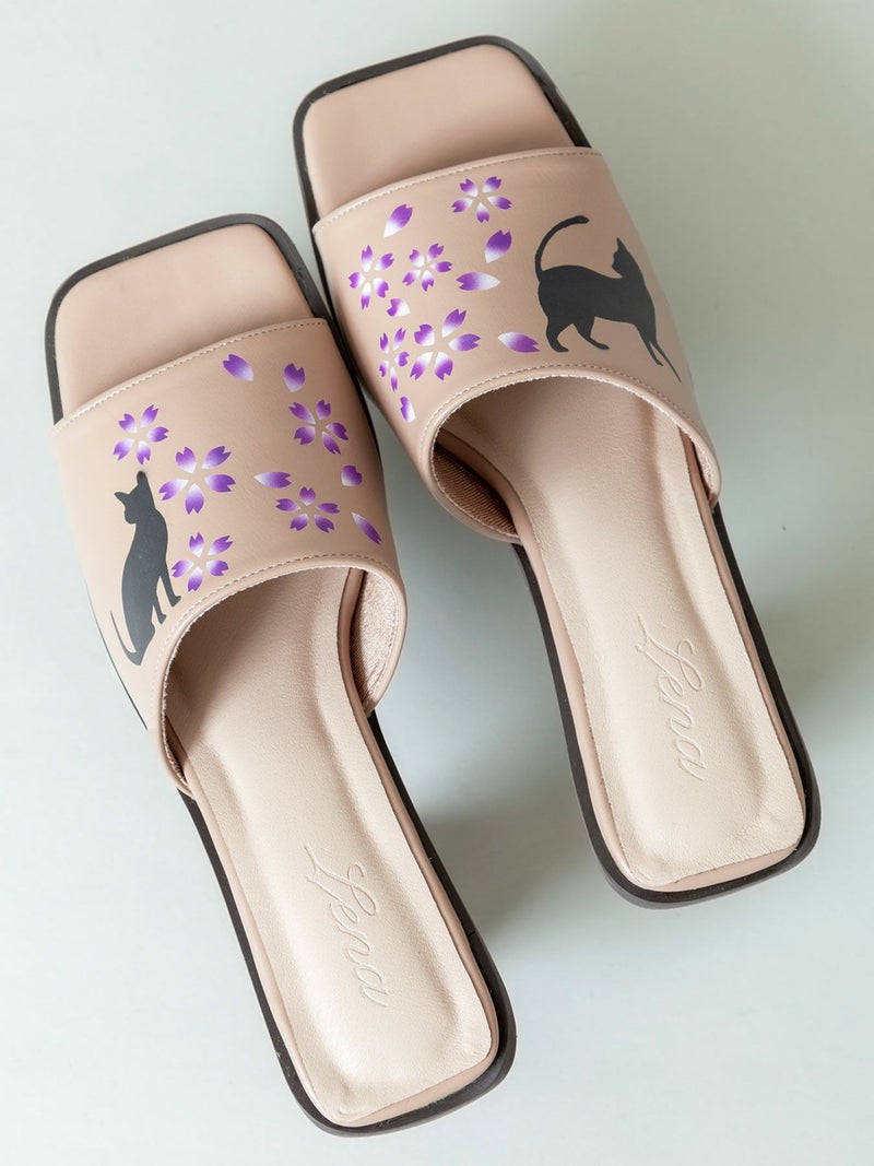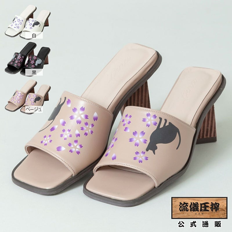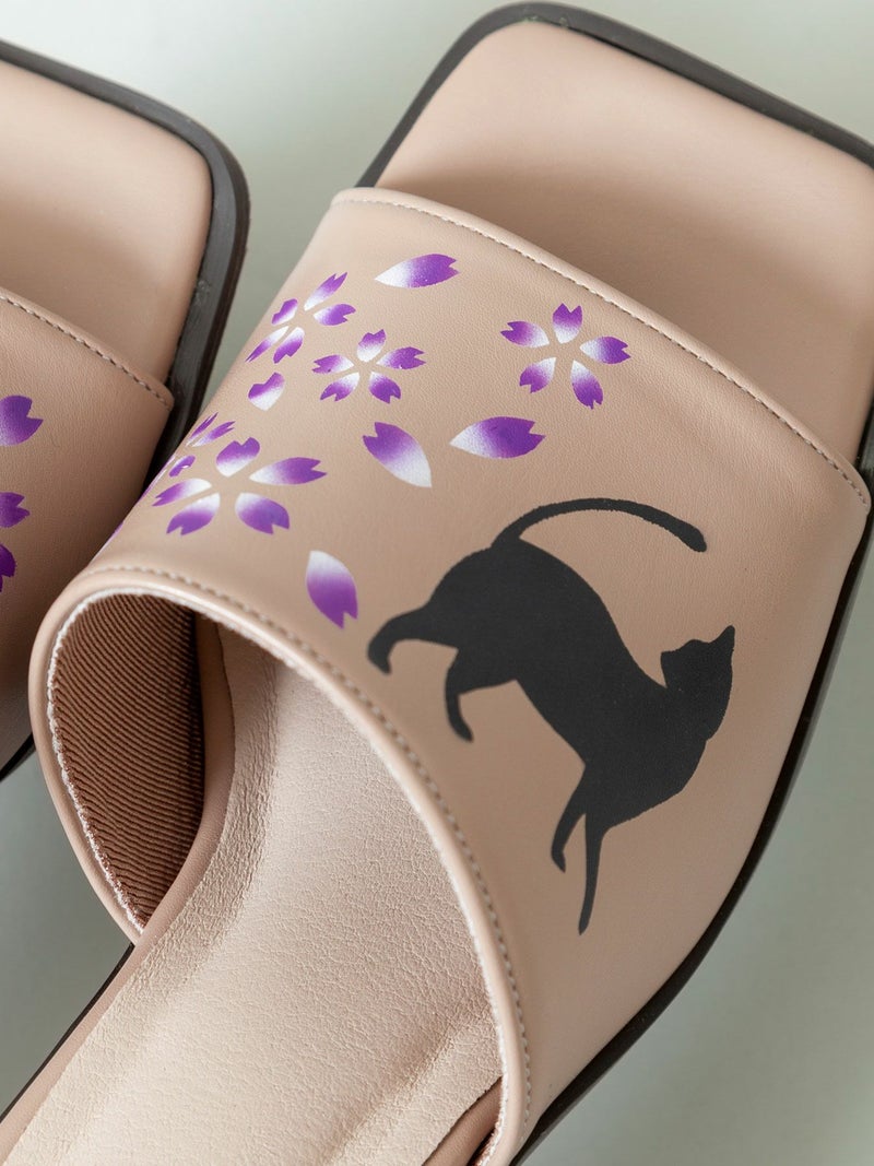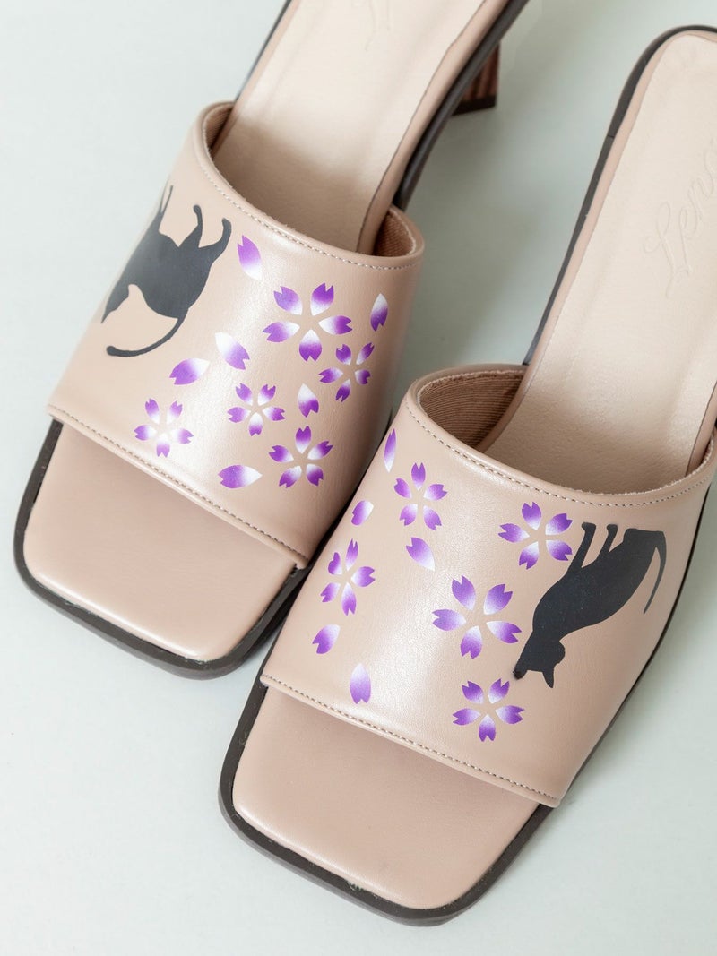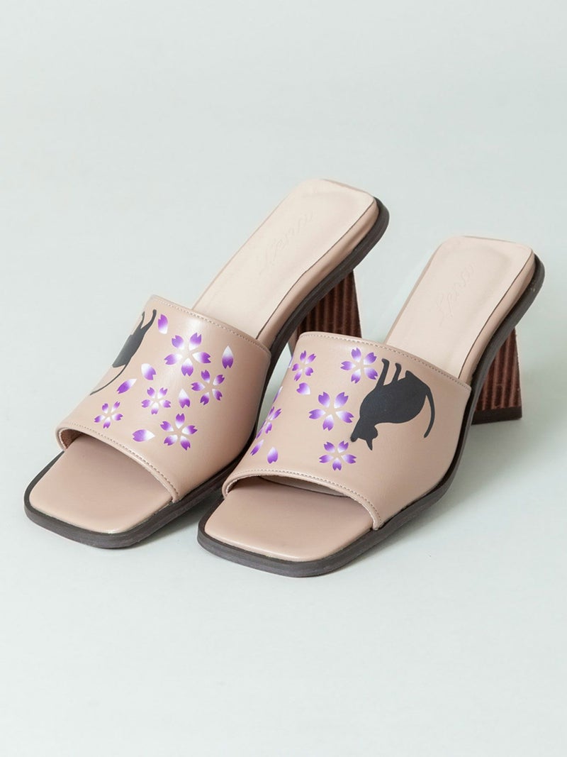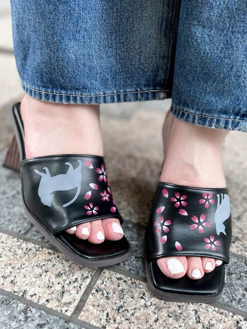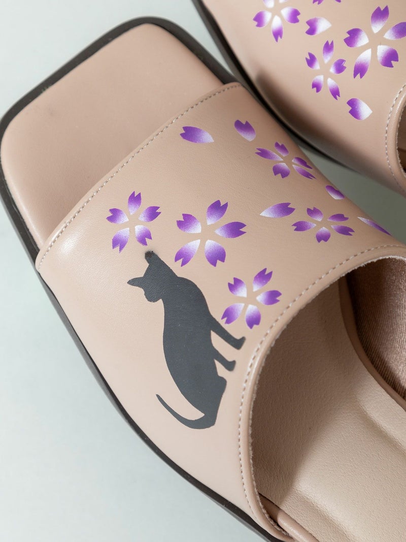 4. ≪70%OFF≫桜猫ステンシルプリント スクエアヒールサンダル≪返品・取寄対応不可≫
