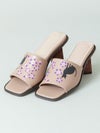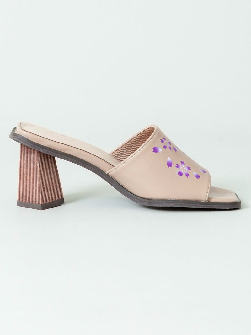 和の雰囲気と相性の良い美しい木目調のヒール部分は太めスクエアヒールを採用し、デザイン性の高さはもちろん、安定感のある履き心地となっています。