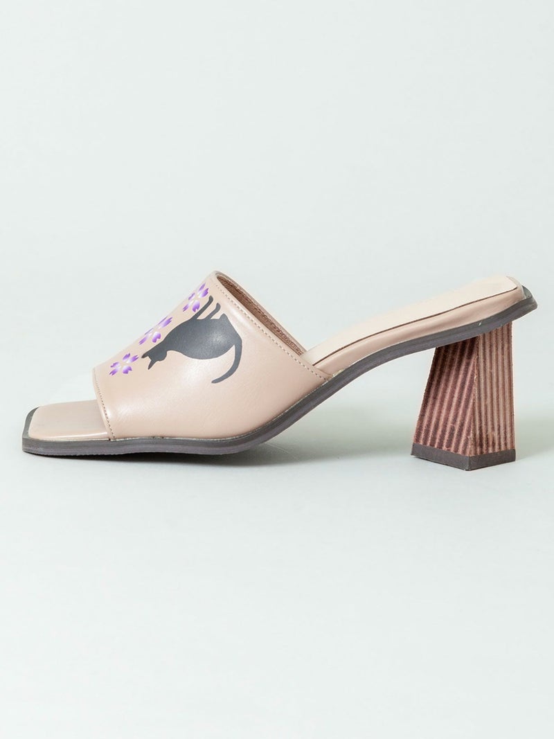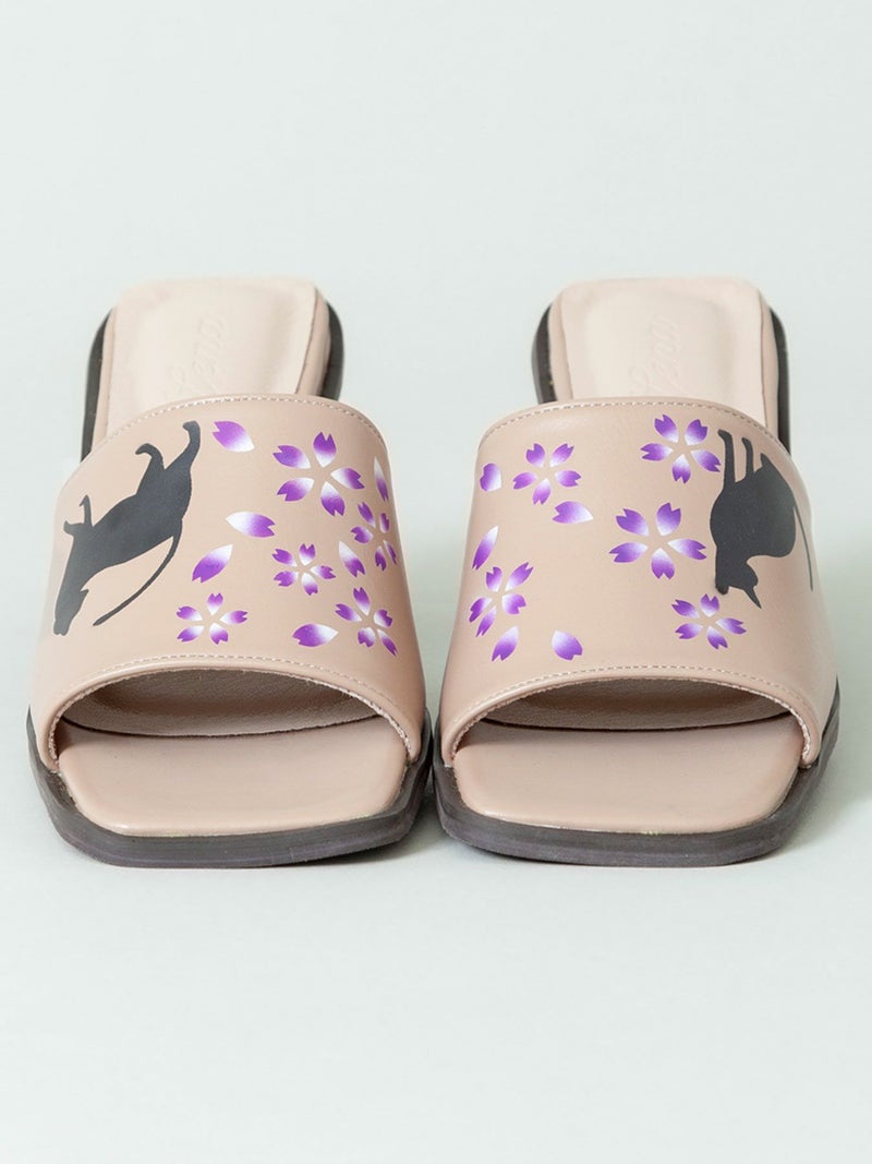 ≪70%OFF≫桜猫ステンシルプリント スクエアヒールサンダル≪返品・取寄対応不可≫