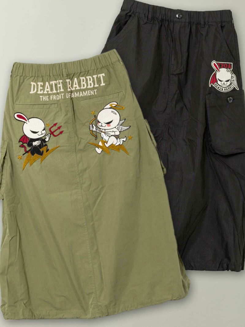 - ≪50%OFF≫【CROWS×WORST】“Angel&Devil”デスラビット刺繍入り2WAYカーゴスカート〔別注〕≪返品・取寄対応不可≫