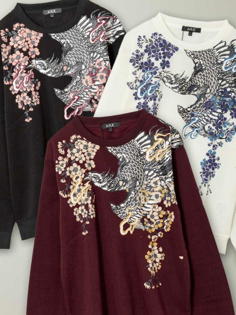 3. 【和風景】“桜鳳凰”プリント入り裏起毛トレーナー≪返品・取寄対応不可≫