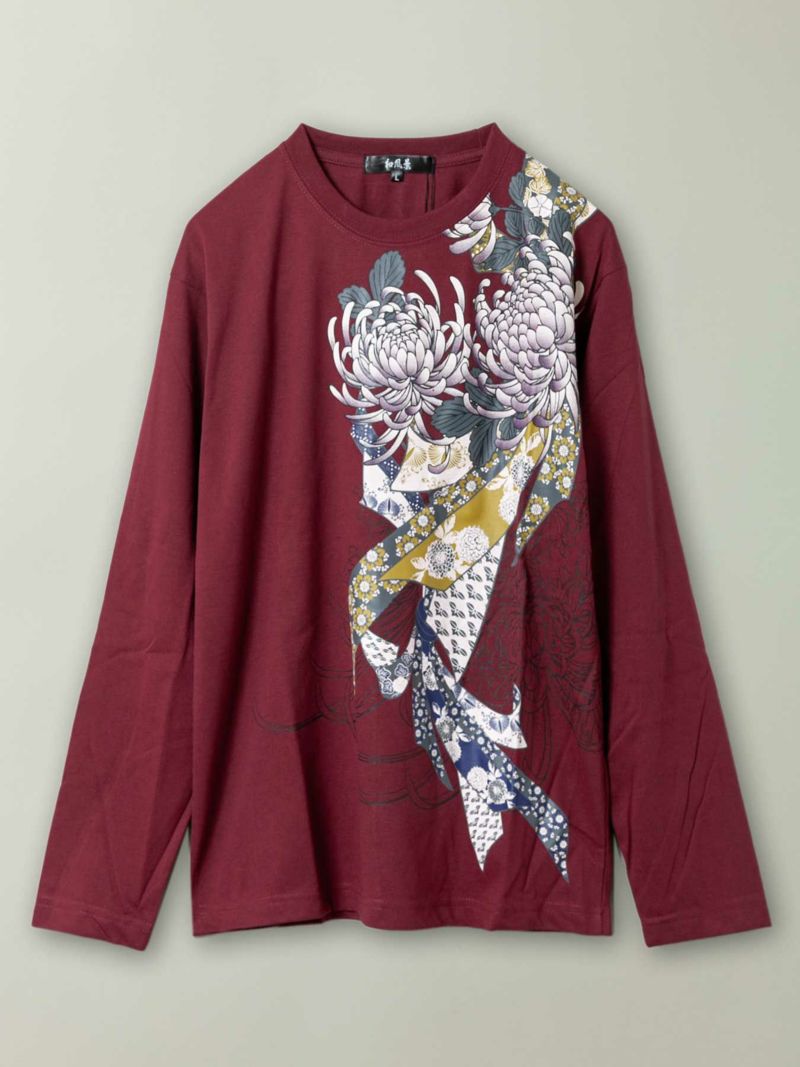 5. 【和風景】“和帯と菊”プリント天竺ロンT≪返品・取寄対応不可≫