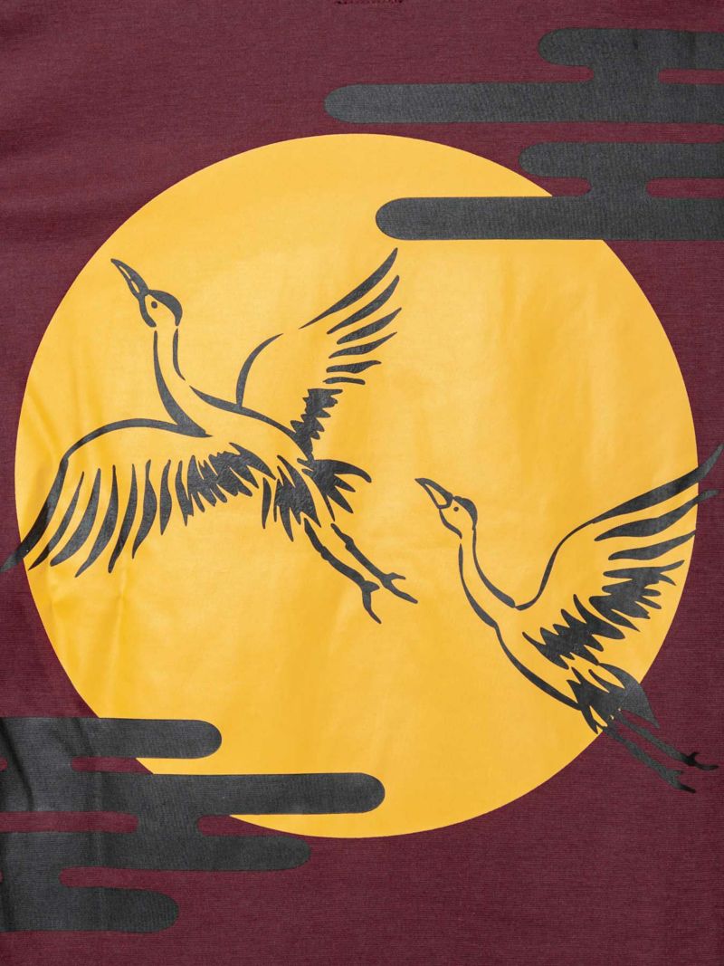 - ≪30%OFF≫【雅結】“月と鶴”刺繍入りプリントロンT≪返品・取寄対応不可≫