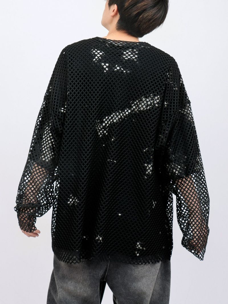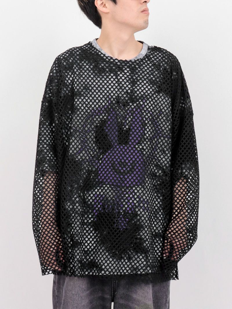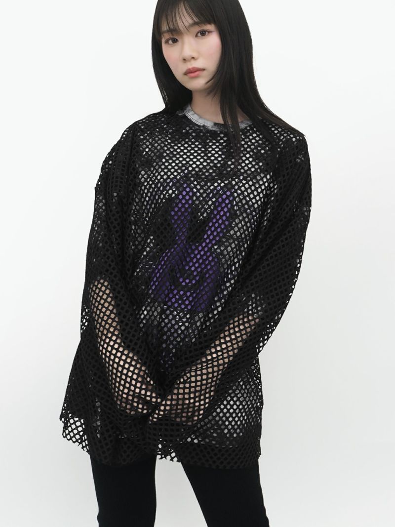 さらに、そのデザインを覆うようにメッシュロンTを重ねることで、二つの病み系ブランドが融合した独自の世界観を表現しています。