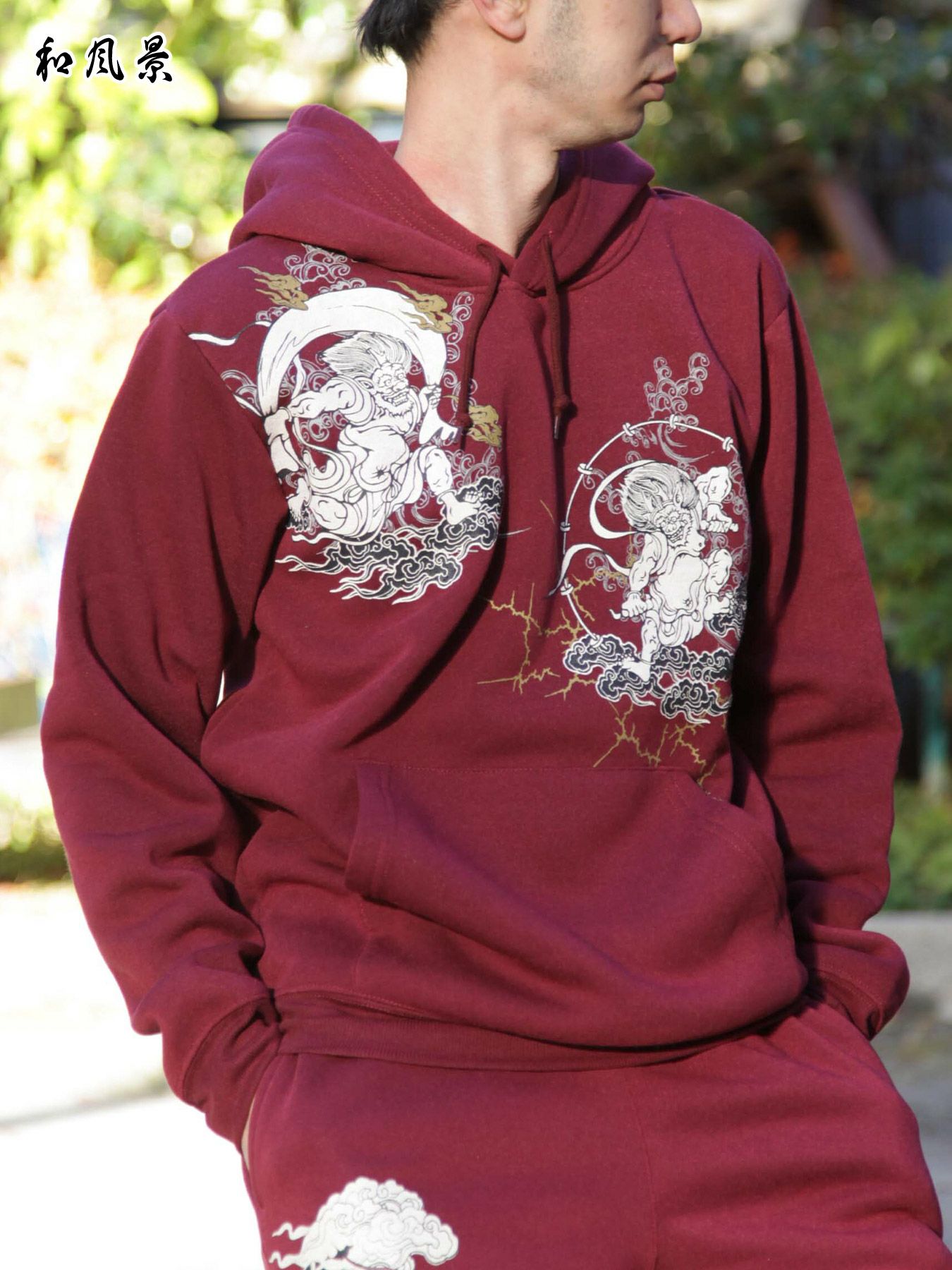 5. 【和風景】“風神雷神”プリント入り裏起毛プルパーカー≪返品・取寄対応不可≫