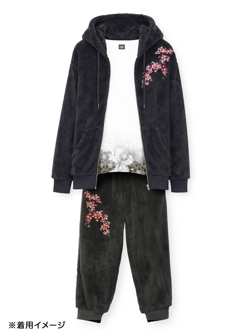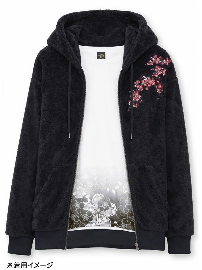 桜刺繍ZIPパーカーアンサンブル