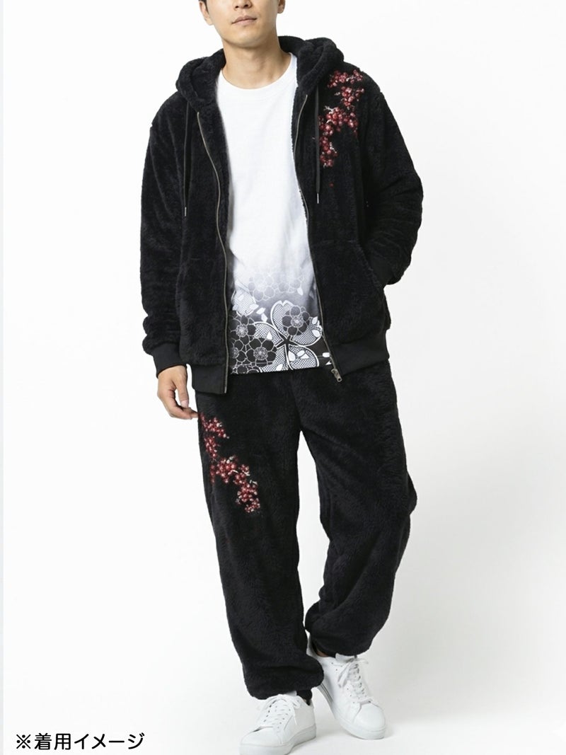 和の美意識を現代風に昇華させた「雅結(みやびむすび)」らしい、存在感あふれる桜柄セットアップとインナーロングTの3ピースが登場。