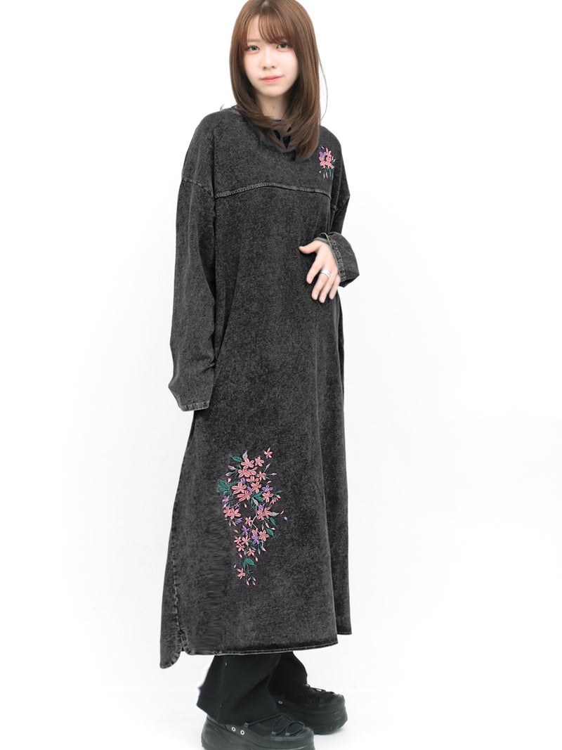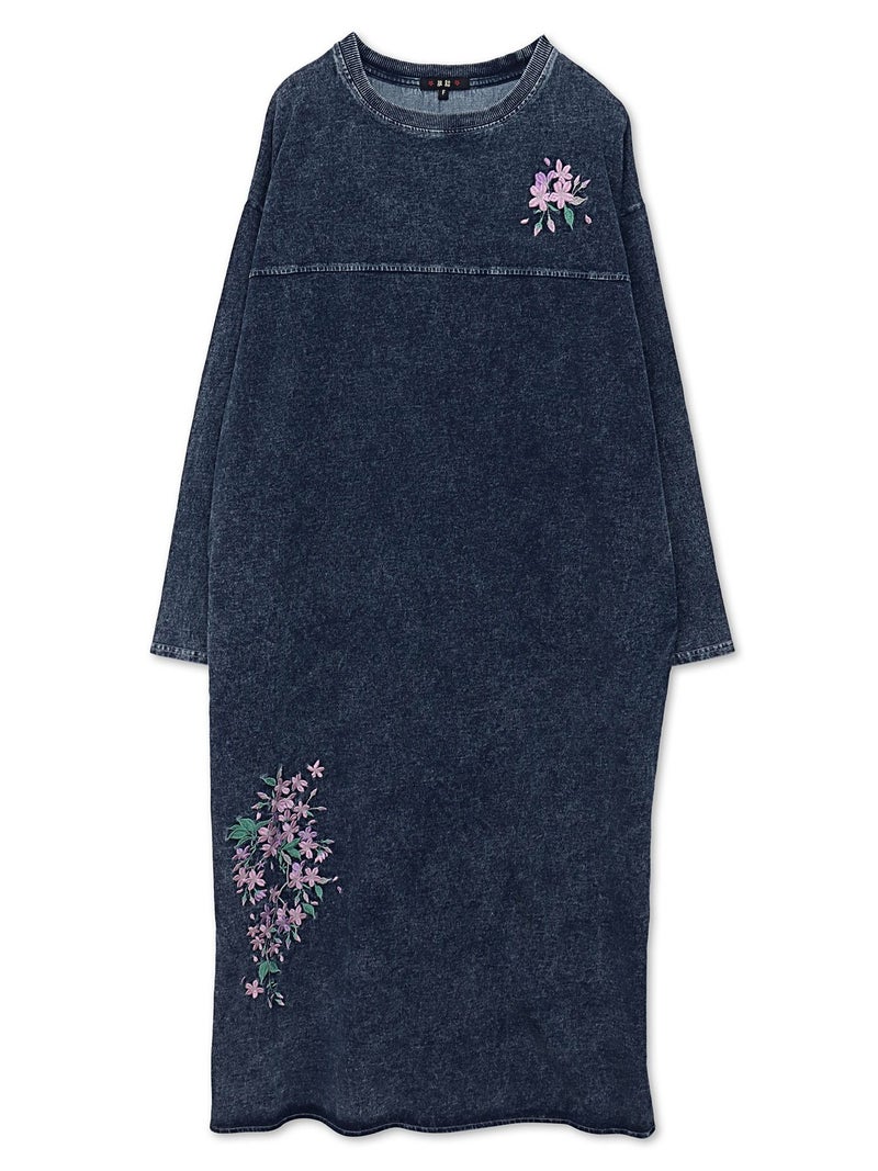 ポケットも付いており、デニム風の色味と柔らかい素材でとても着やすい一着に仕上がっています。