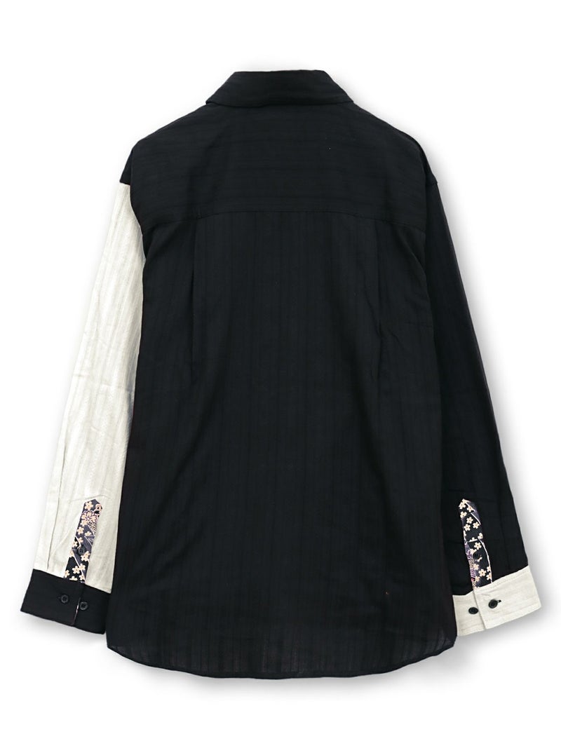 片腕や身頃に切替デザインを大胆に施し、さらにワンポイントで光沢感のある素材を使用した桜モチーフを配置しており上品で粋な仕上がりになっています。