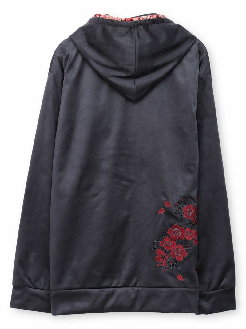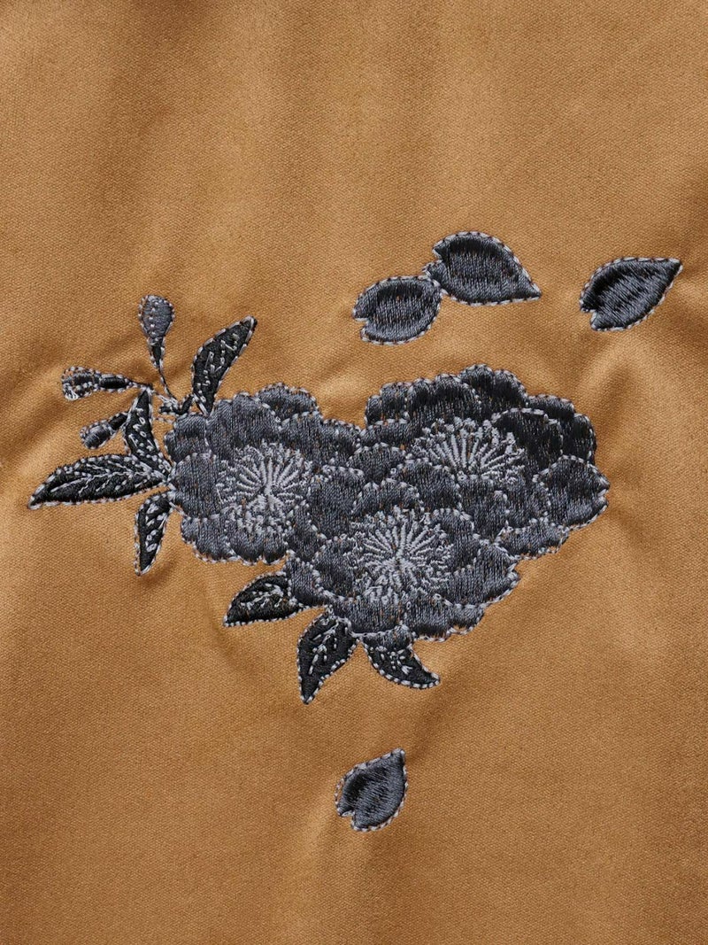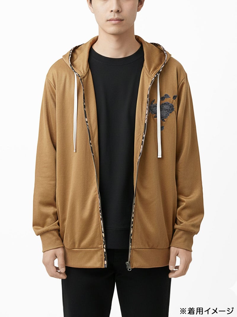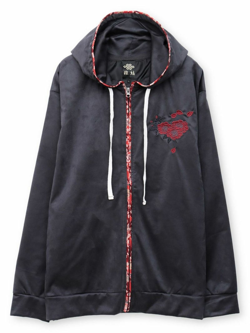 桜刺繍和生地遣いフェイクスウェードZIPパーカー
