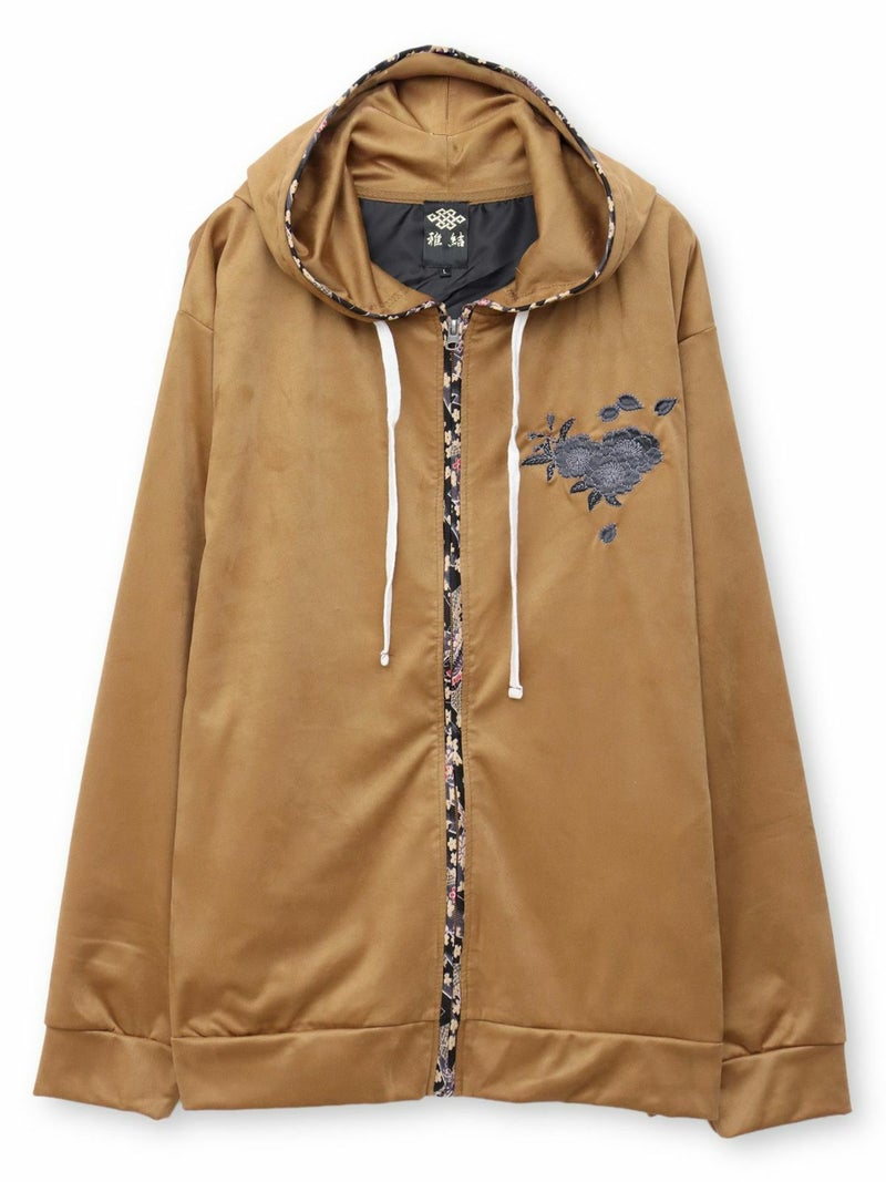 3. 【雅結】桜刺繍和生地遣いフェイクスウェードZIPパーカー