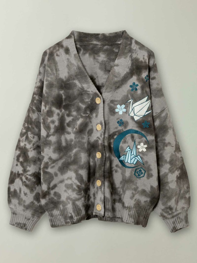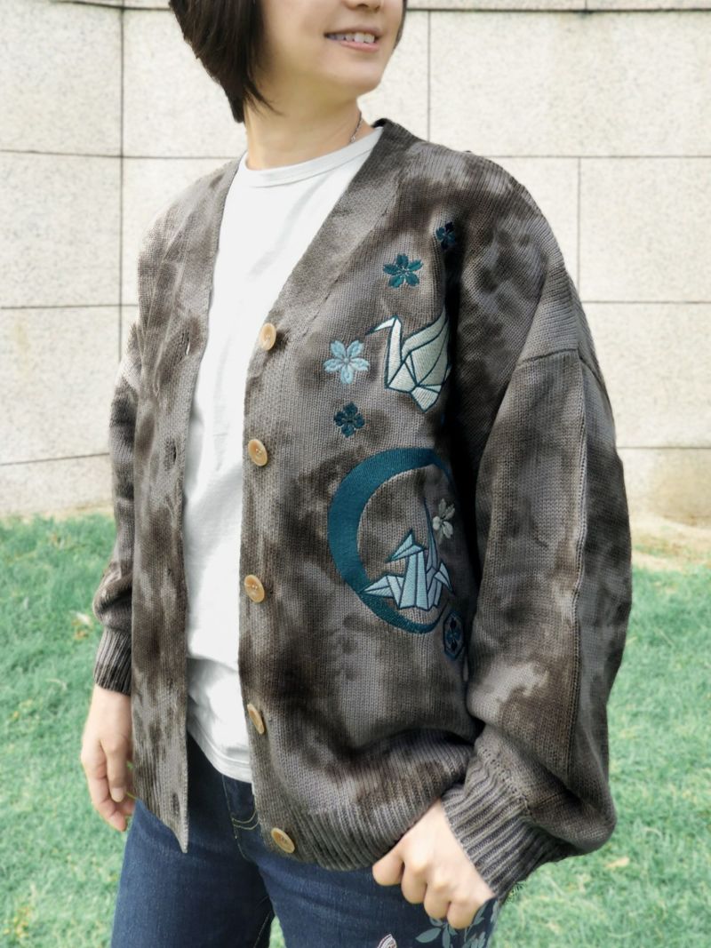 - ≪30%OFF≫【雅結】折り鶴刺繍タイダイ染めニットカーディガン≪返品・取寄対応不可≫