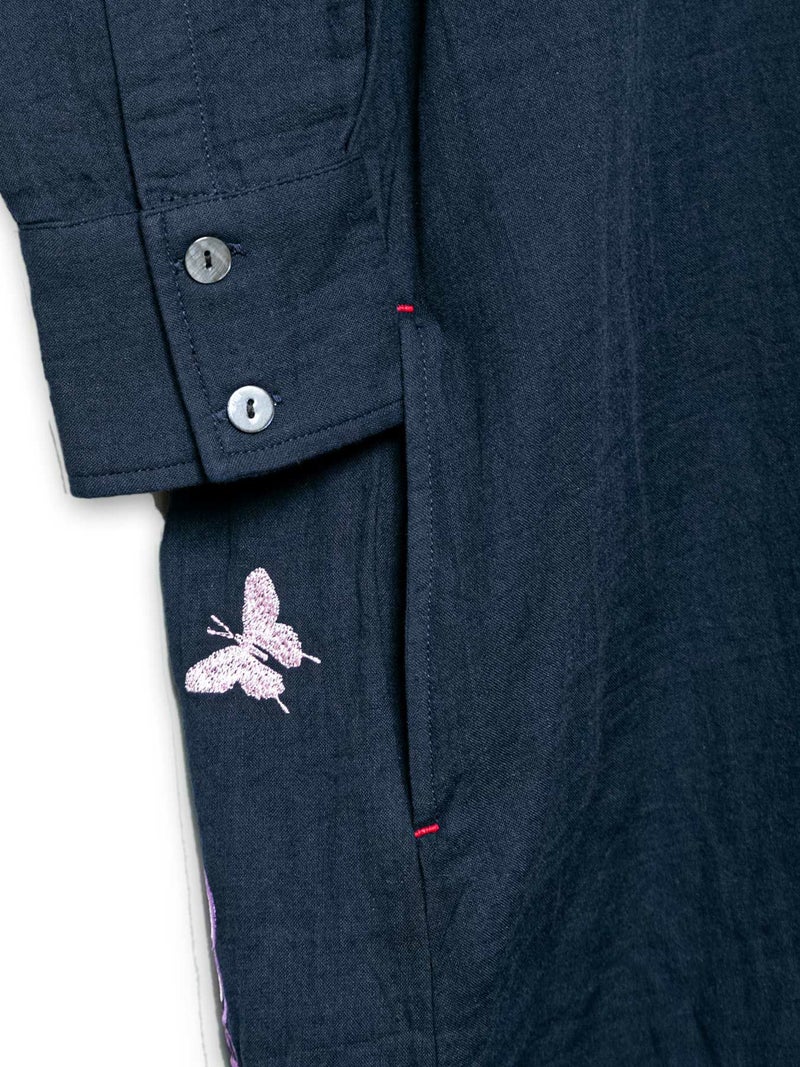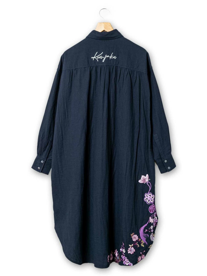 - 【今昔 -KON-JAKU-】“着物狐と百花繚乱”バルーンシルエット ロングシャツ