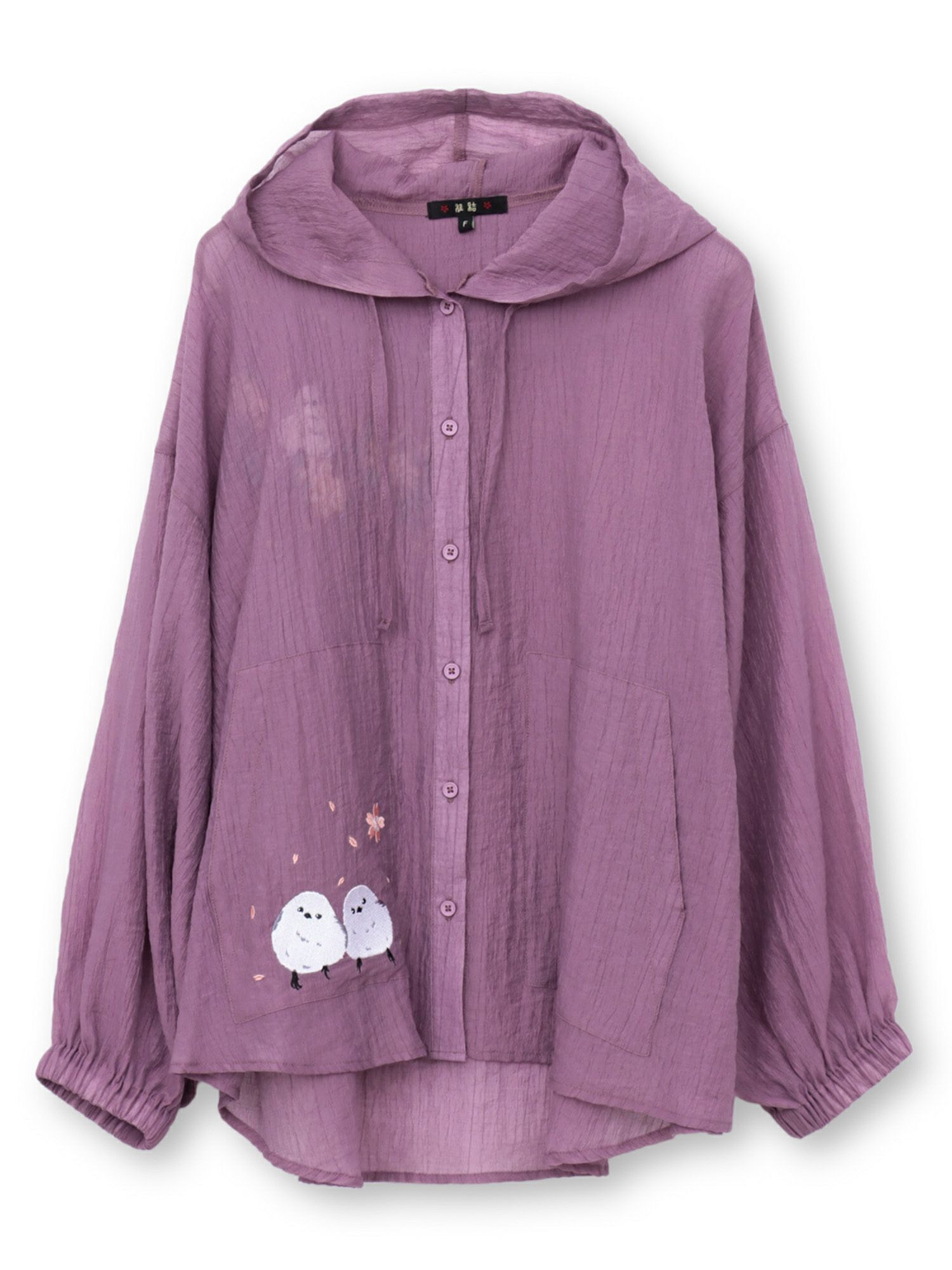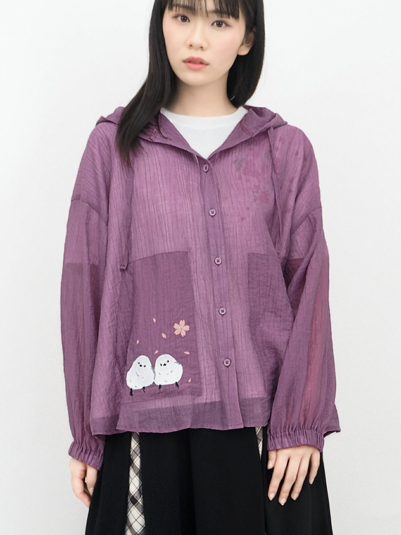 桜とシマエナガ刺繍 シアー素材ブラウスパーカー