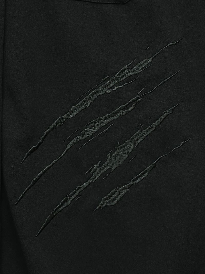 -EN-らしい特徴的な「キモノスリーブ」と呼ぶ袖に向かって広がるデザインはそのままに、闇夜に潜む狼のプリントを背面に、狼の鋭い爪での引っ掻き傷を刺繍で施しました。