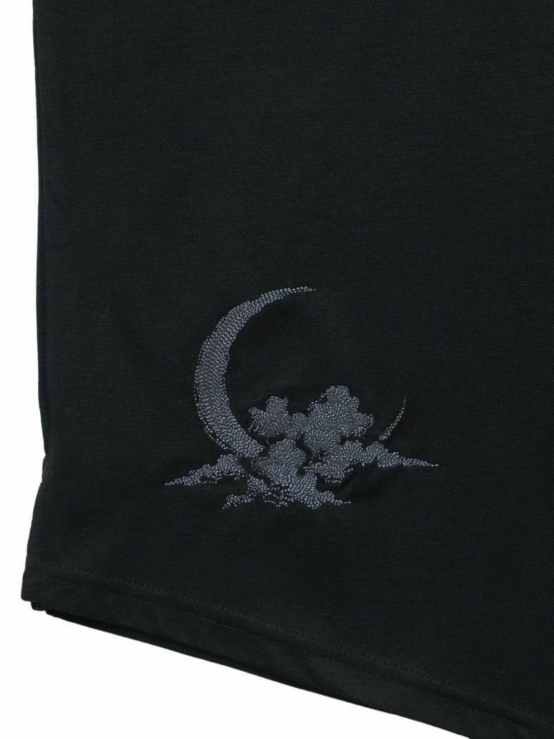 斜めにカットされた裾部分と、さり気なく施された上品な月の刺繍が一枚着でも確かな存在感を放ちます。