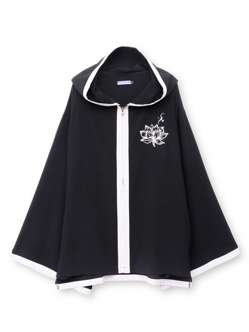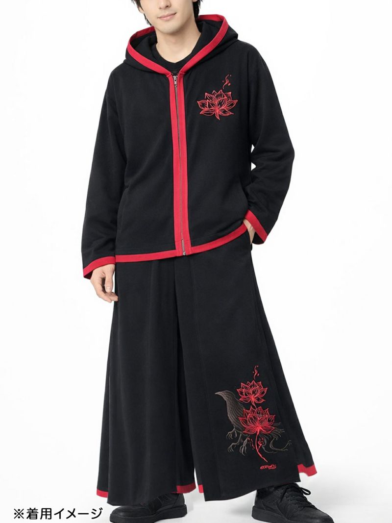 “八咫烏と蓮”刺繍入りキモノスリーブZIPパーカー