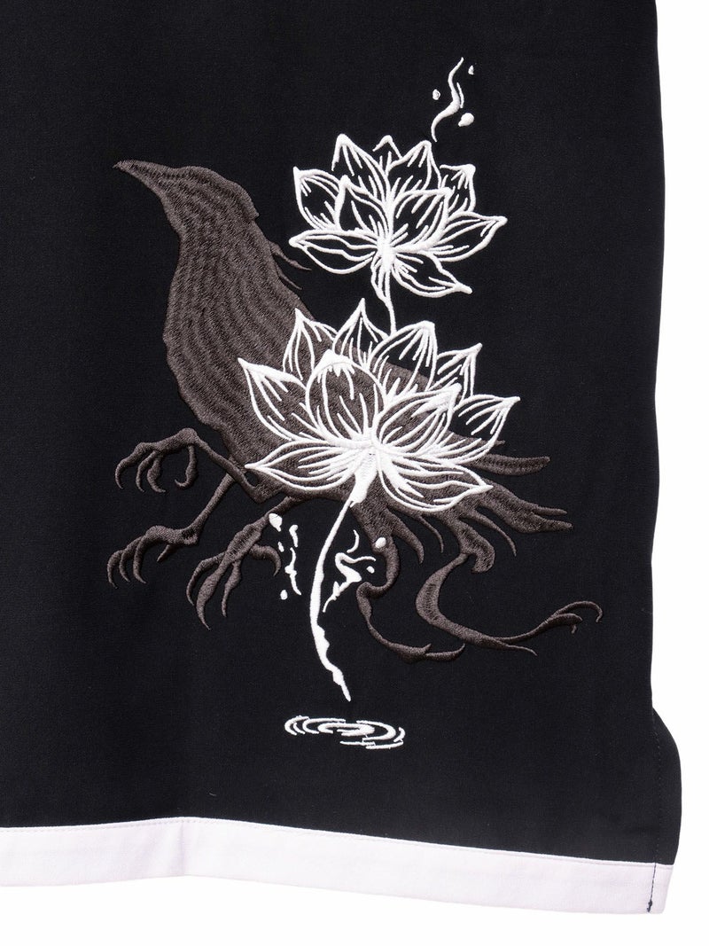 -EN-らしい特徴的な「キモノスリーブ」と呼ぶ袖に向かって広がるデザインはそのままに、背面の裾部分には八咫烏と蓮の花を刺繍であしらいました。