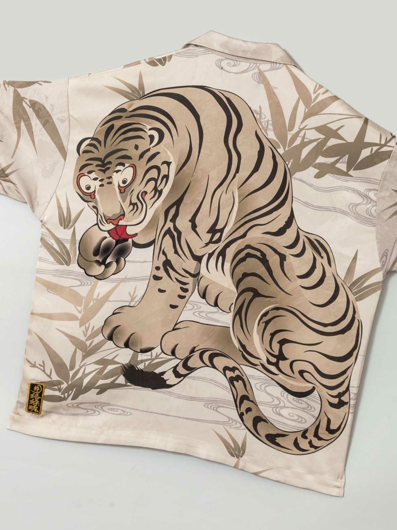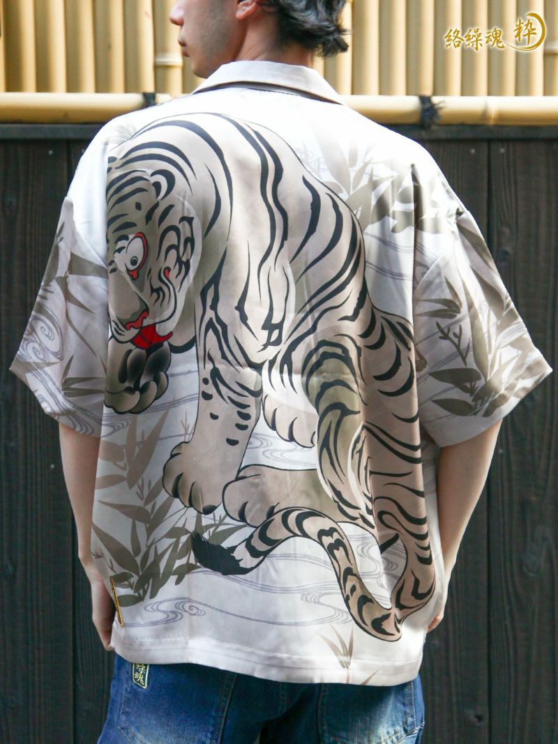 - ≪50%OFF≫【絡繰魂・粋】“虎図-若冲-”昇華転写プリントBIGシルエット半袖シャツ≪返品・取寄対応不可≫