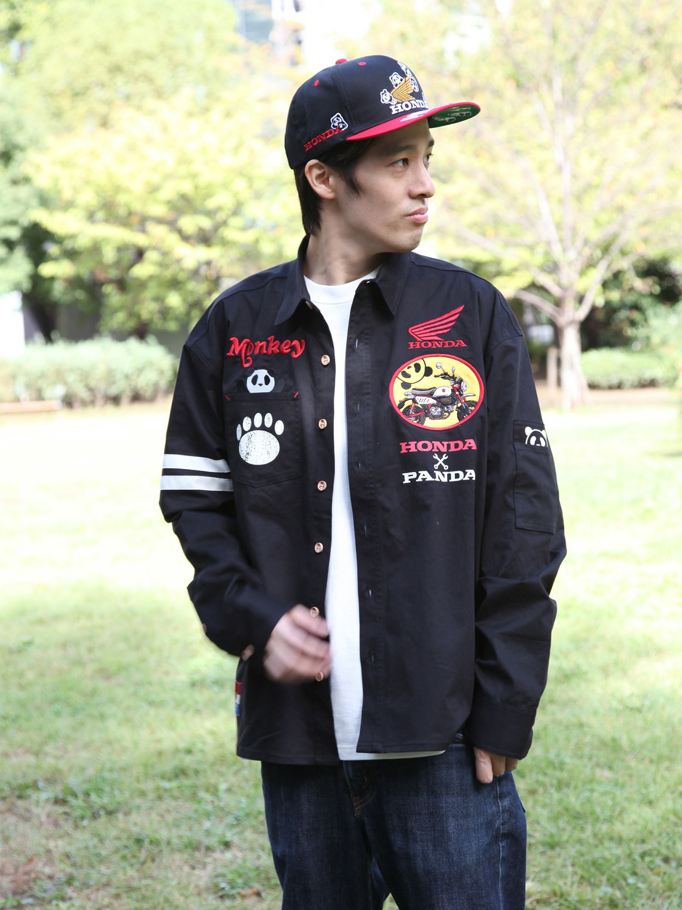 - ≪20%OFF≫【HONDA×PANDIESTA JAPAN】“MONKEY125”刺繍入りミリタリーツイルシャツ≪返品・取寄対応不可≫
