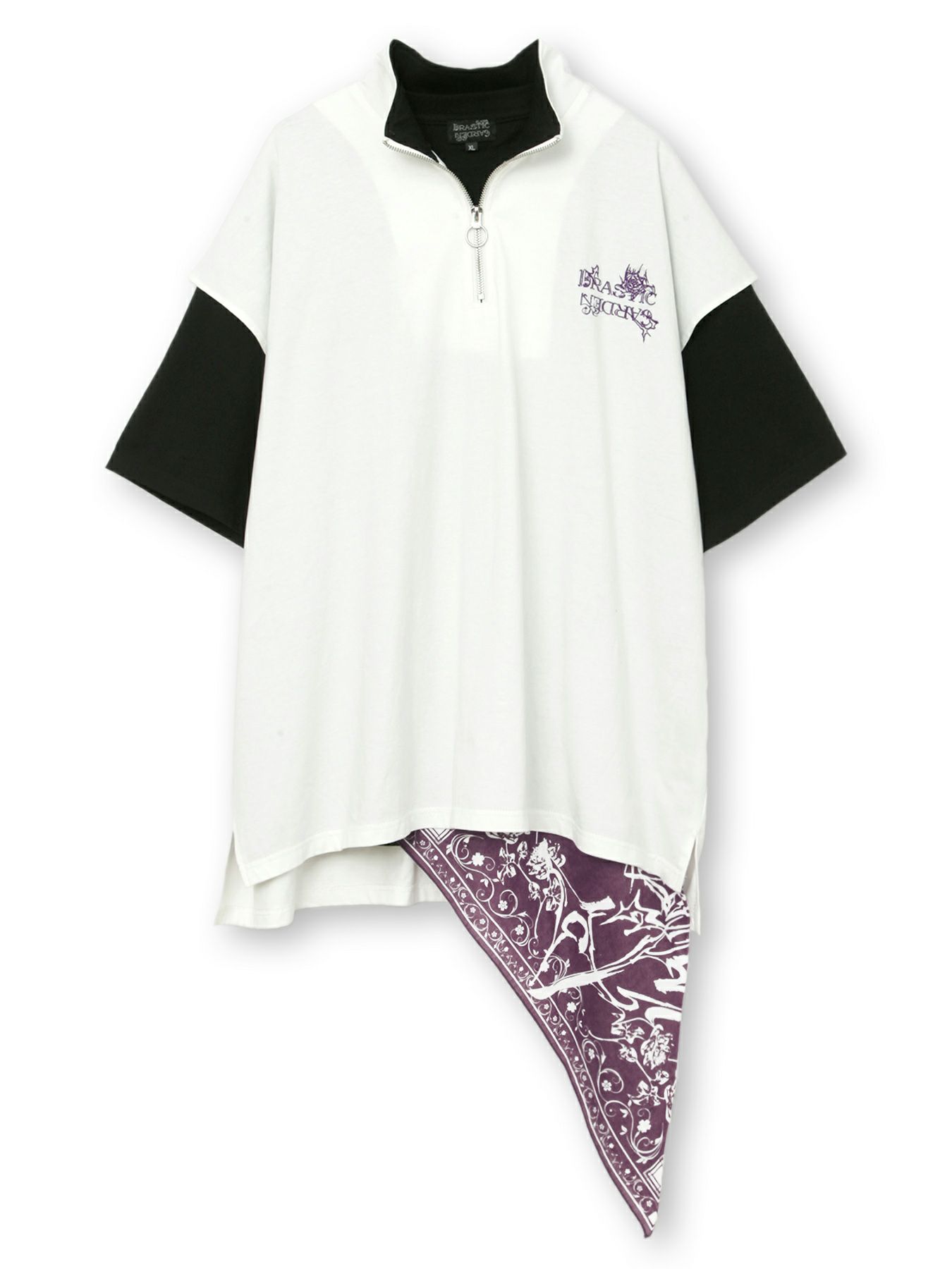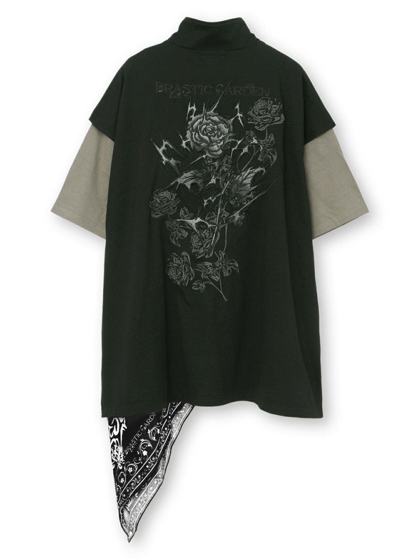 - 【DRASTIC GARDEN】“稲妻の薔薇”総刺繍ハーフジップベスト×バンダナTシャツ アンサンブル