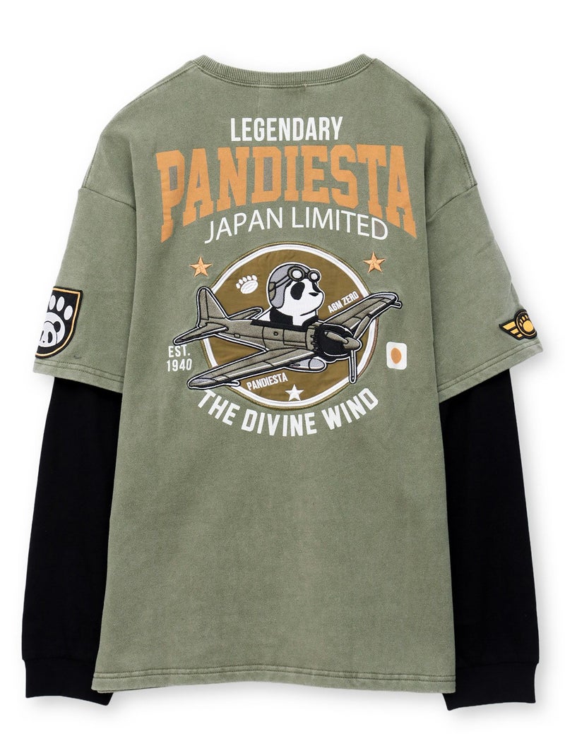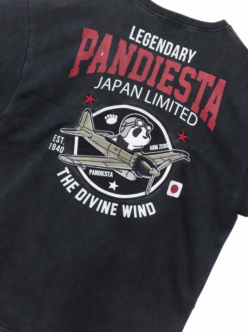 部隊マークなどをオマージュしたワッペンを配置し、かつて大空を駆け巡ったであろう零式戦闘機に乗り込むパンダをデザイン。