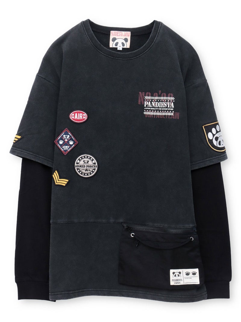 5. 【PANDIESTA JAPAN】サコッシュ付き刺繍入りフェイクレイヤードスウェットトレーナー