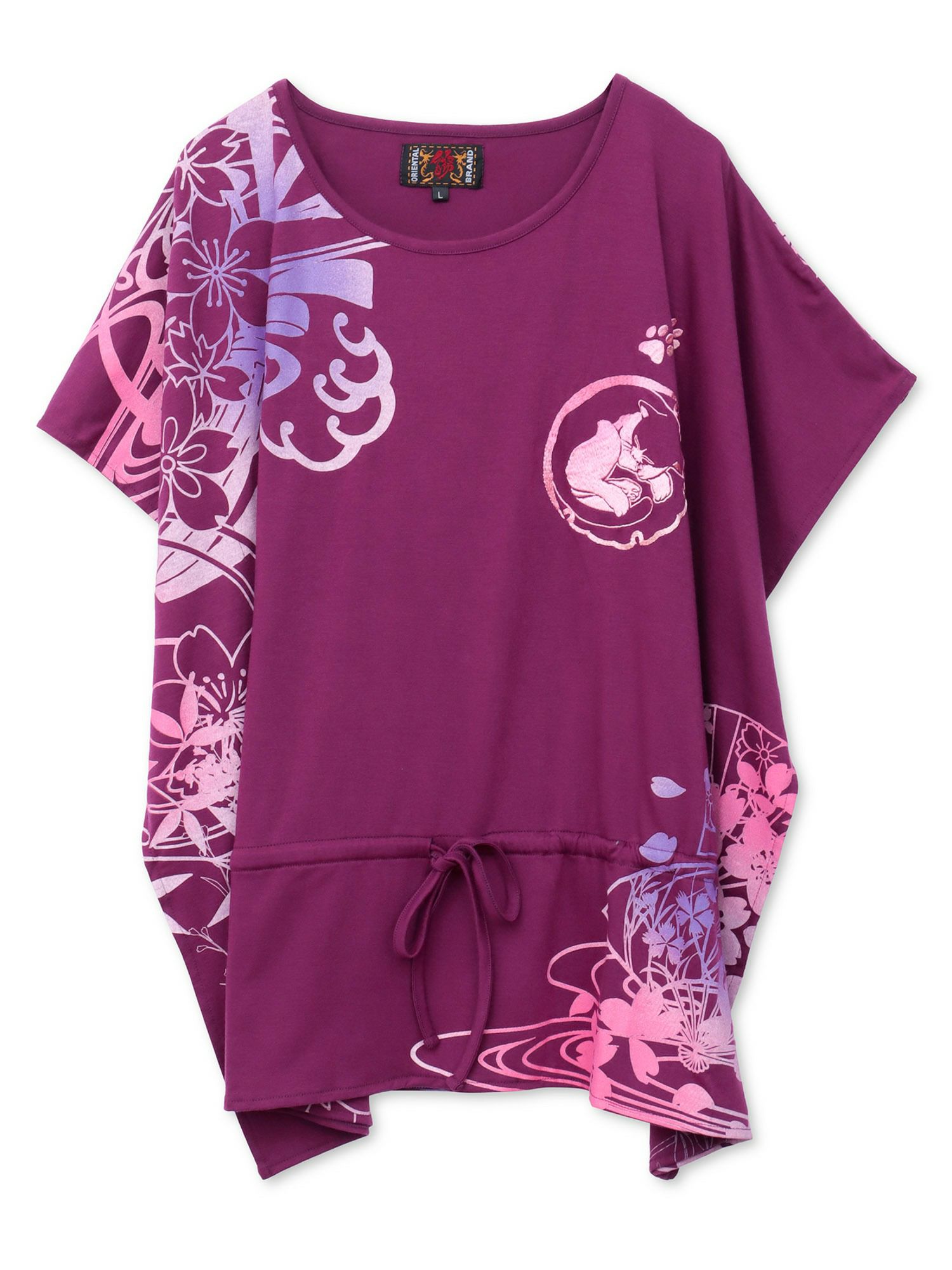 6. ≪30%OFF≫【錦】“眠り猫”グラデーションプリント 刺繍入りドルマンチュニック〔別注〕≪返品・取寄対応不可≫