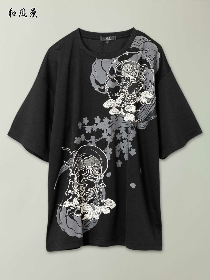 - 【和風景】“風神雷神と桜”プリントDRY素材Tシャツ≪返品・取寄対応不可≫