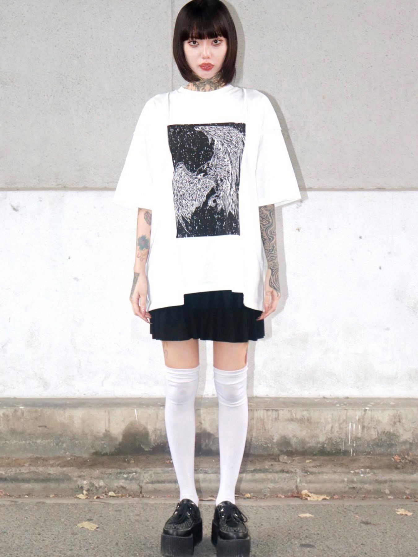 - ≪30%OFF≫【DAKU】カラスプリント 変形Tシャツ≪返品・取寄対応不可≫