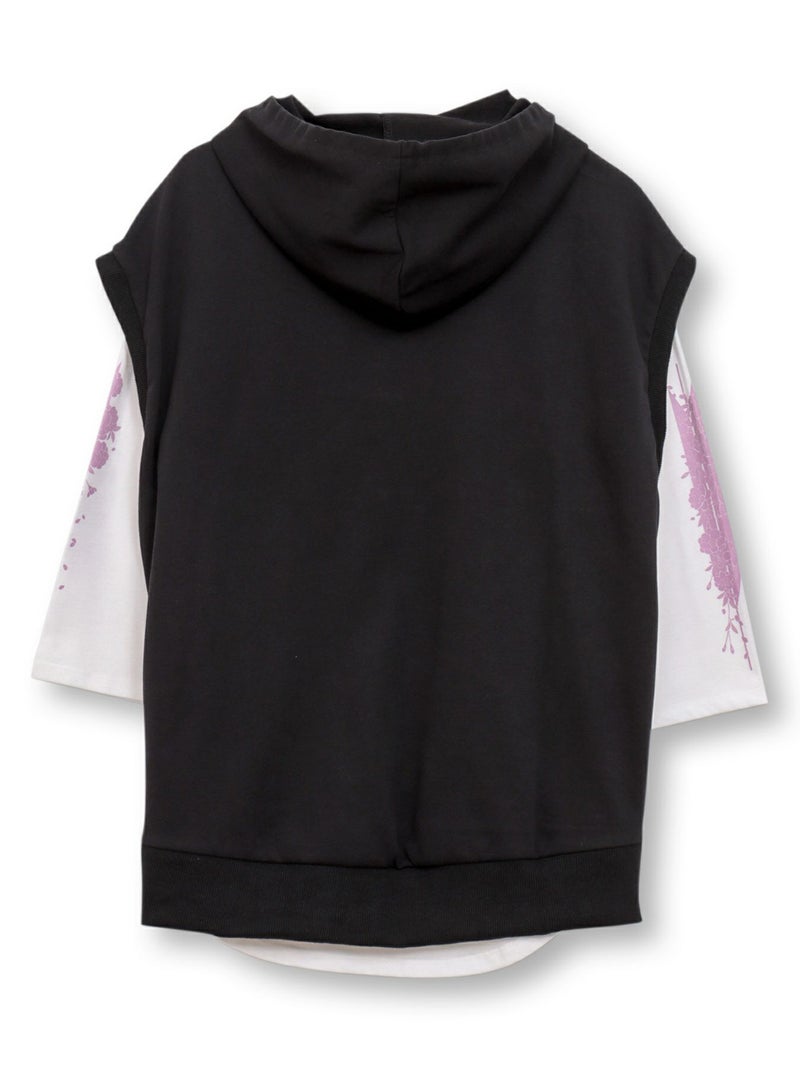 - ≪31%OFF≫【雅結】矢絣と桜刺繍フードベスト×7分袖Tシャツ アンサンブル≪返品・取寄対応不可≫