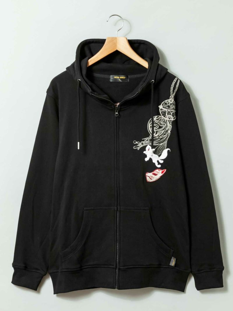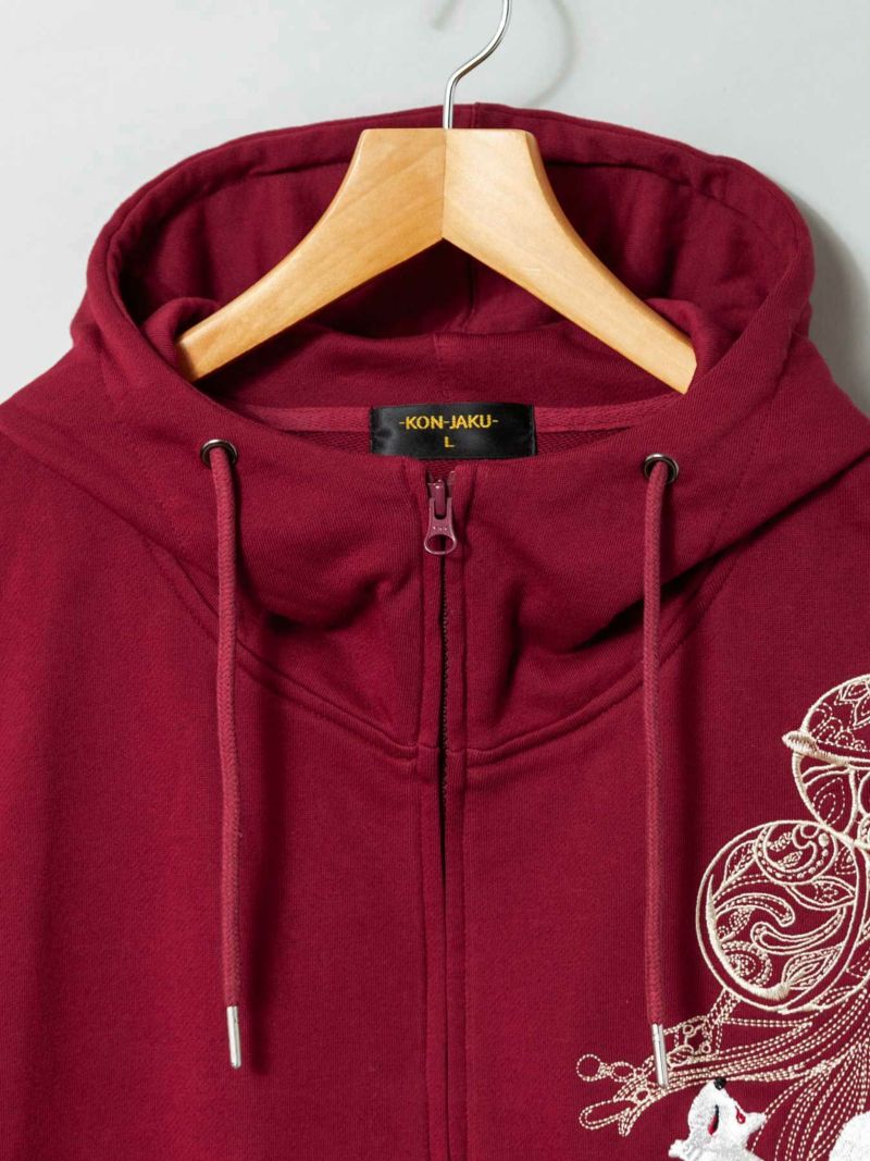 4. 【今昔 -KON-JAKU-】“束ね熨斗と狐”総刺繍ZIPパーカー