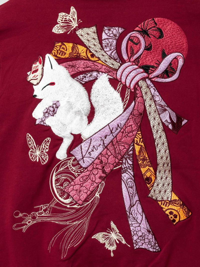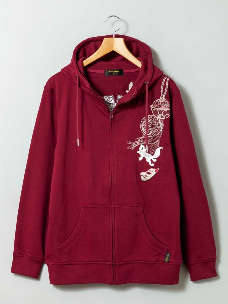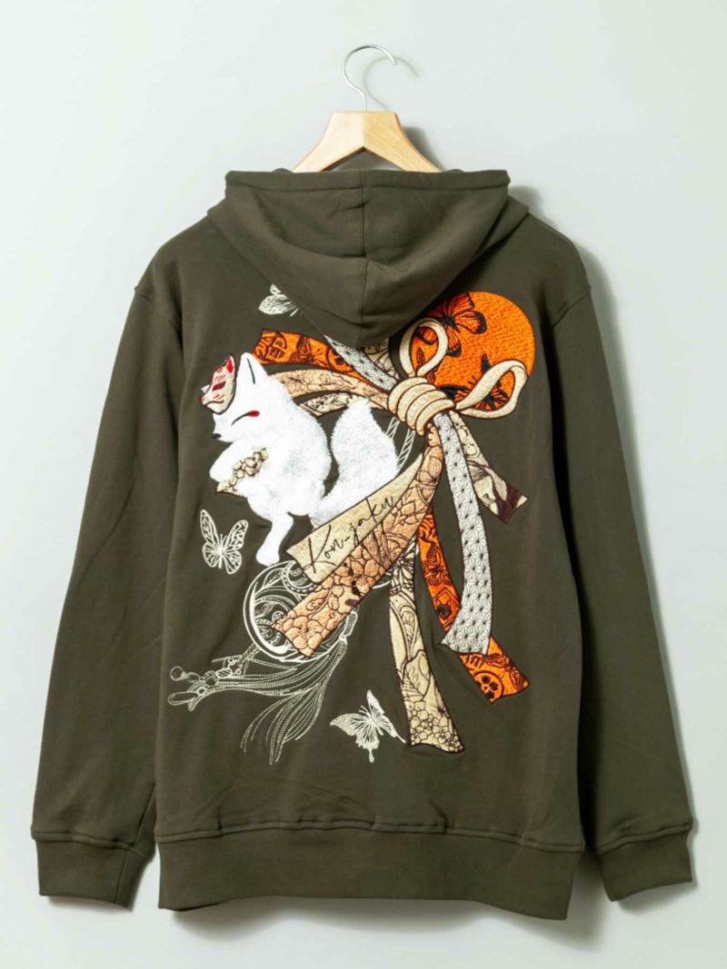 “束ね熨斗と狐”総刺繍ZIPパーカー