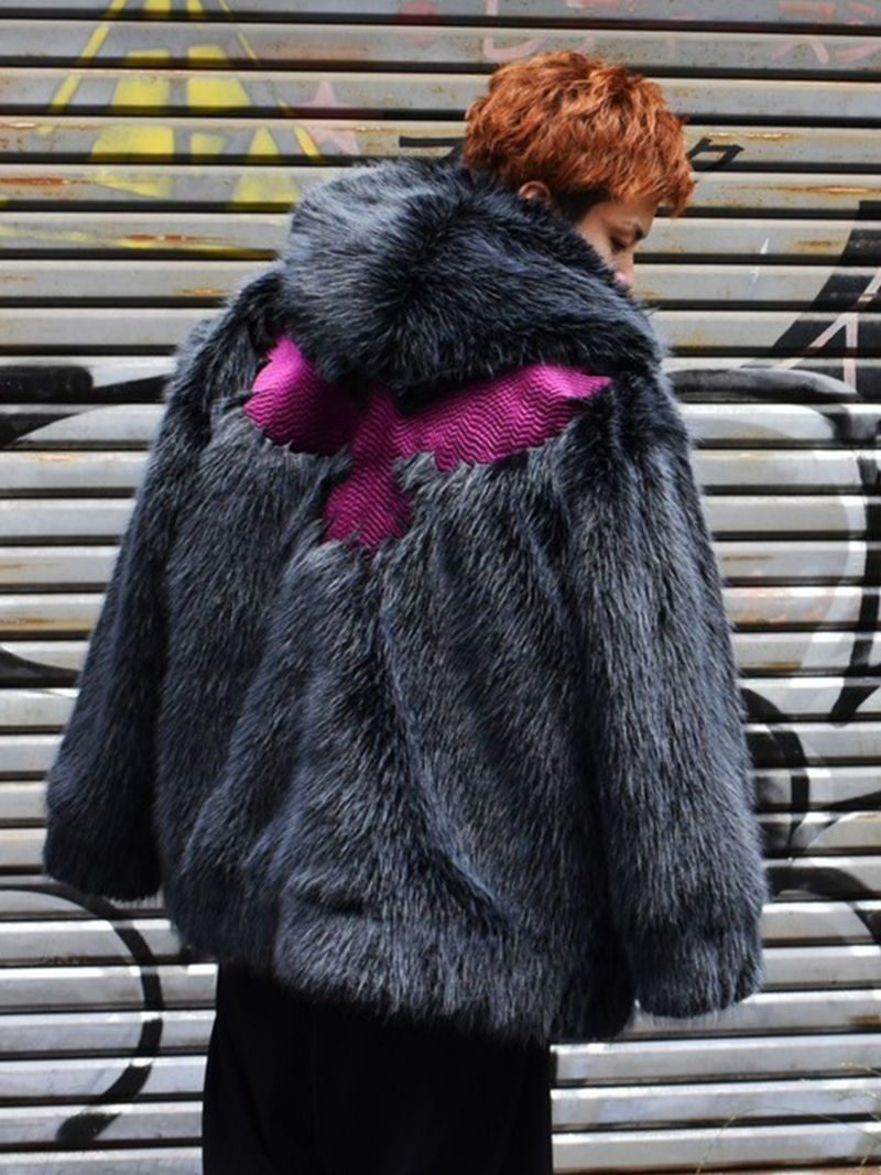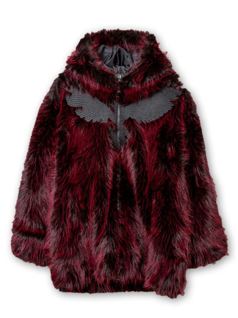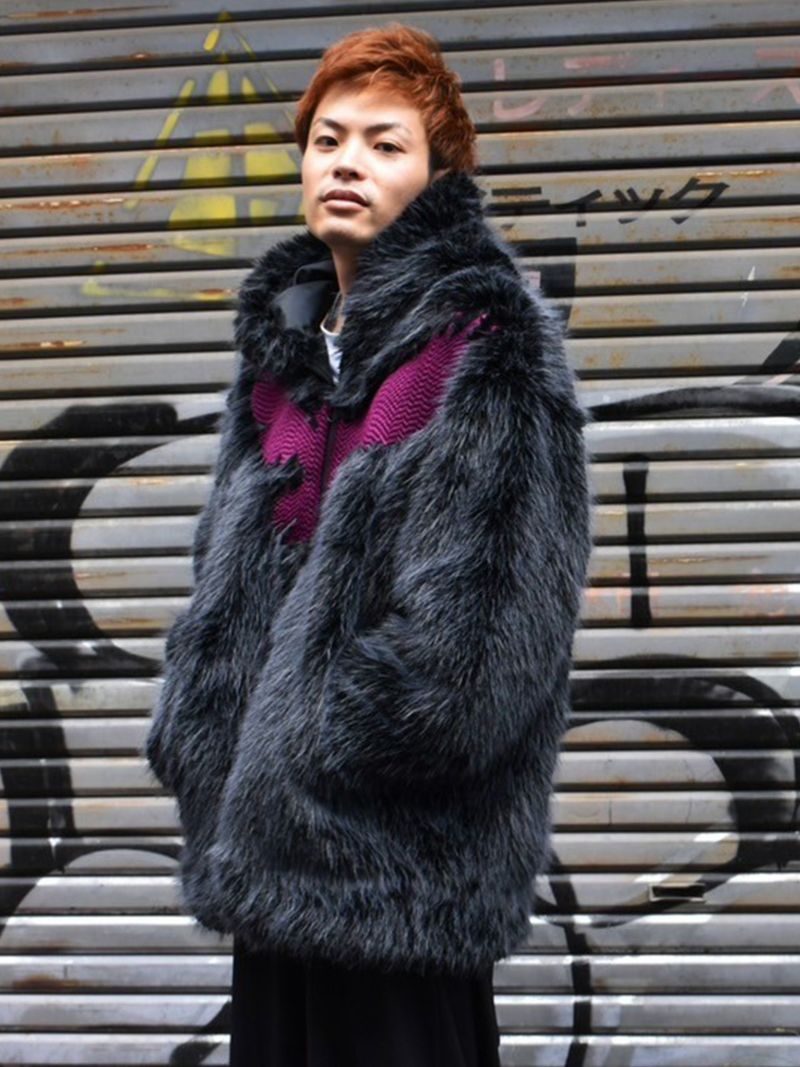 こちらはブランドを象徴する「カラス」をメインモチーフに採用したフェイクファージャケットです。