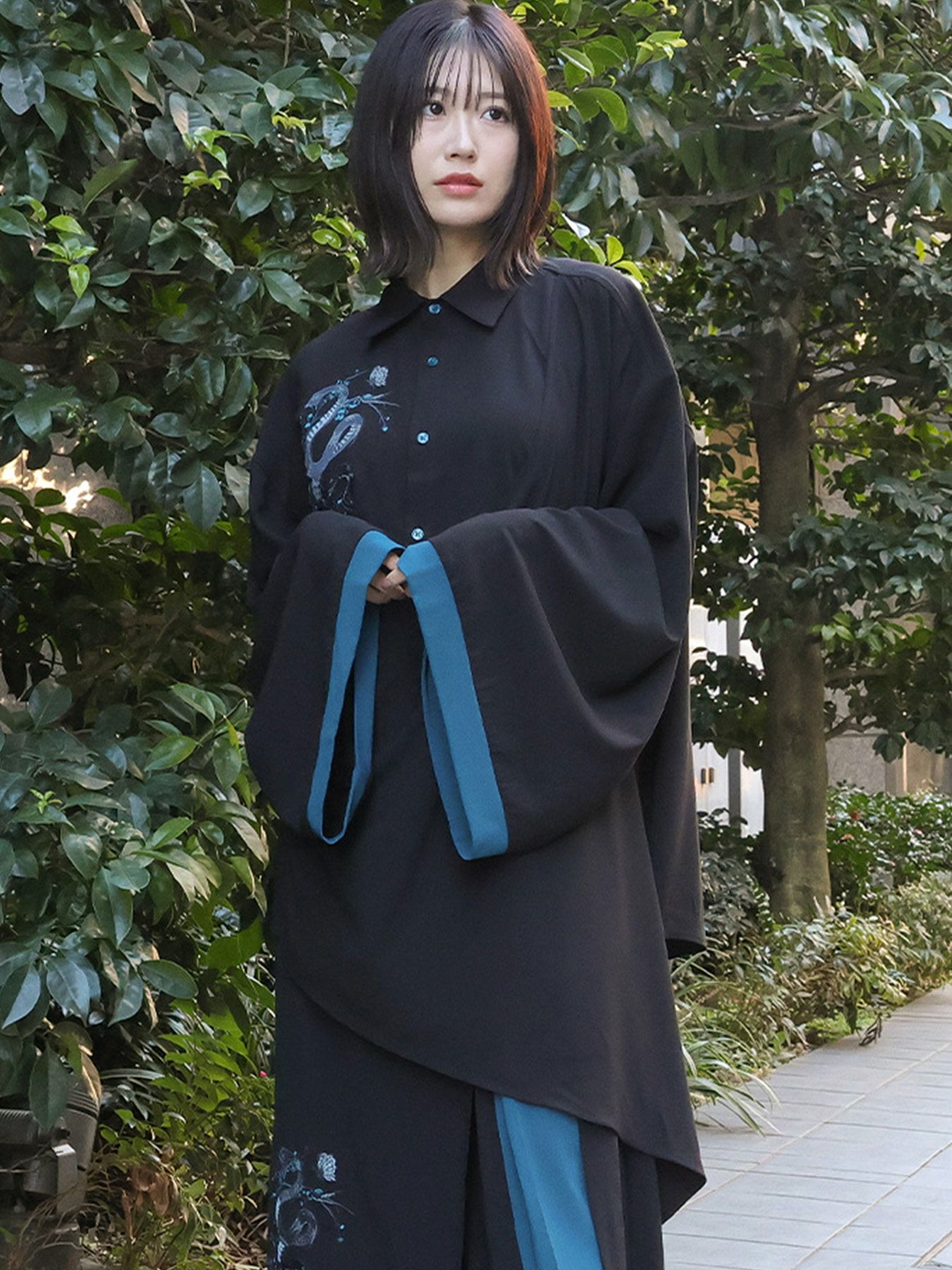 他の画像を見る 【雅結 -EN-】“陰の狼”キモノスリーブ ロングシャツアンサンブル ¥ 12,100 税込 【女性モデルサイズ:H162cm / Lサイズ着用】 【男性モデルサイズ:H171cm / Lサイズ着用】 売切れ カートへ追加 お気に入りに登録する