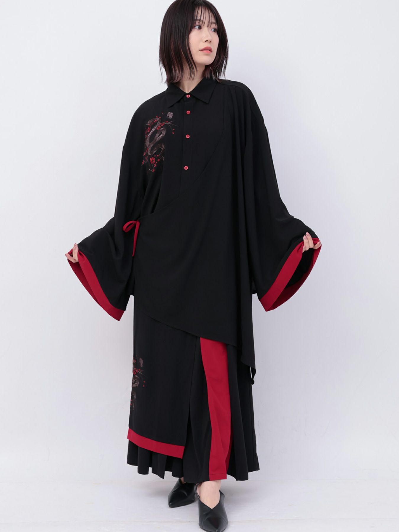 3. 【雅結 -EN-】“梅と蛇”配色切替キモノスリーブ変形シャツ
