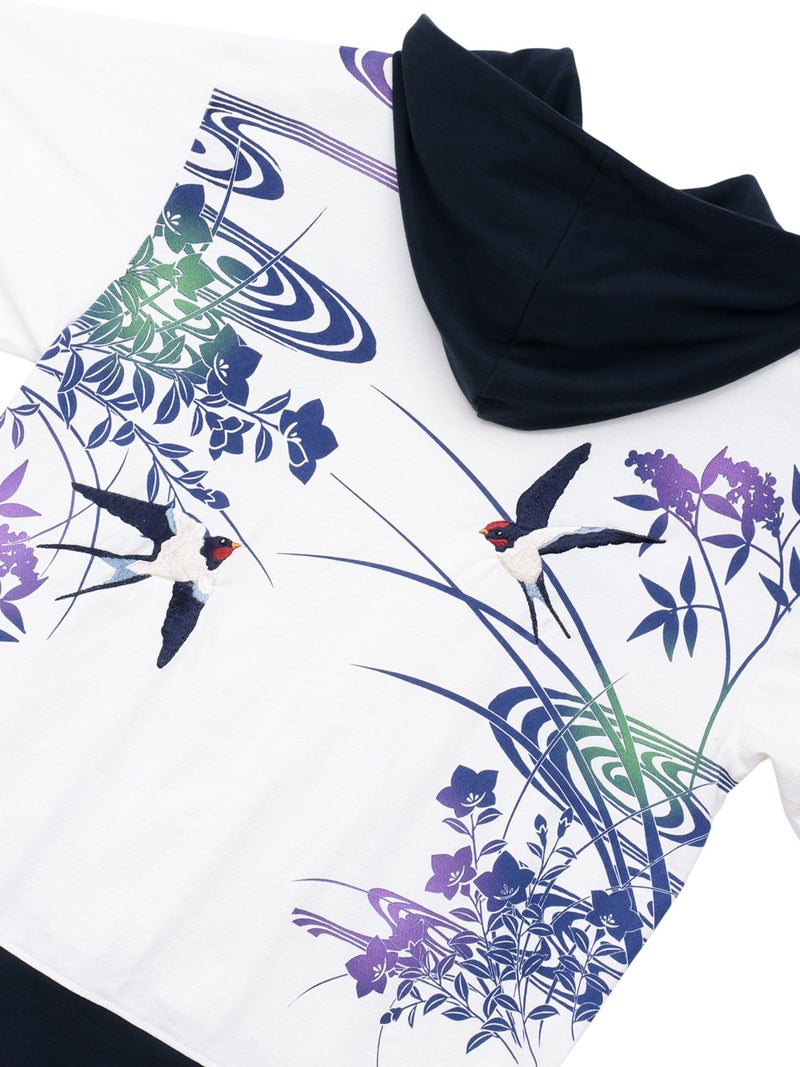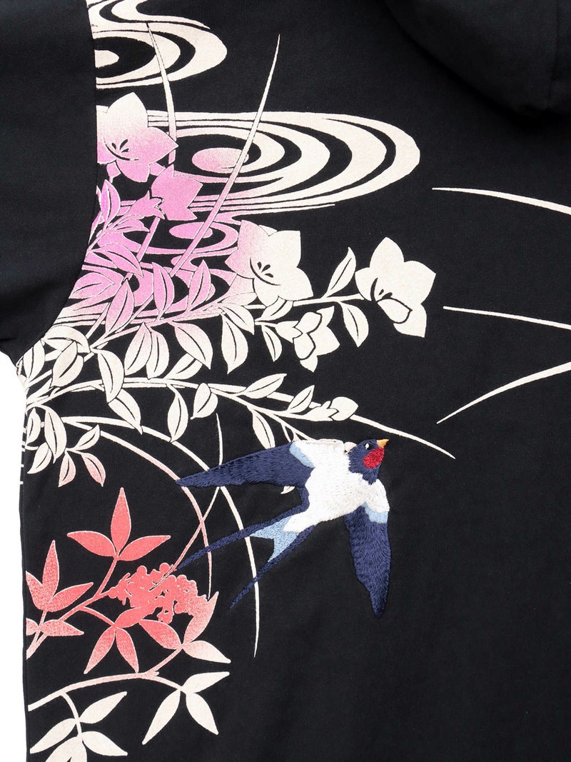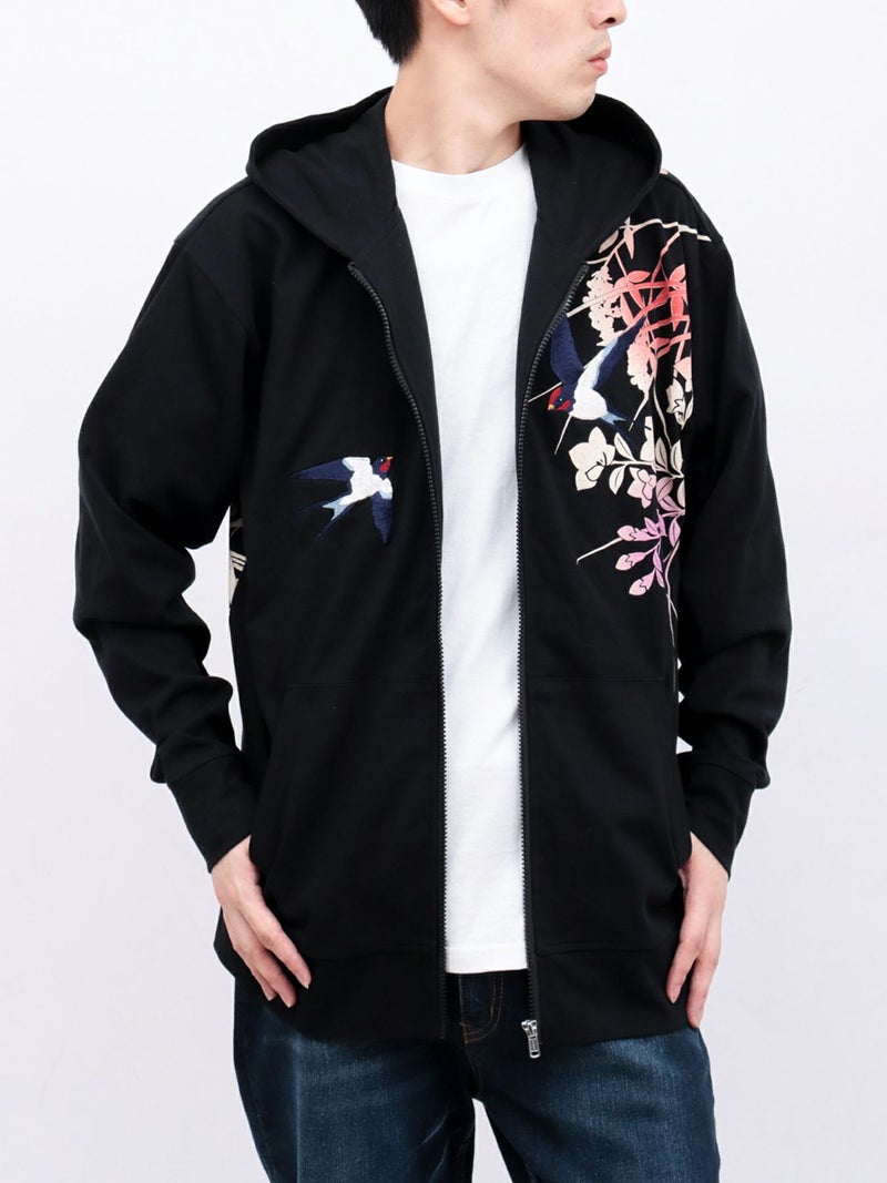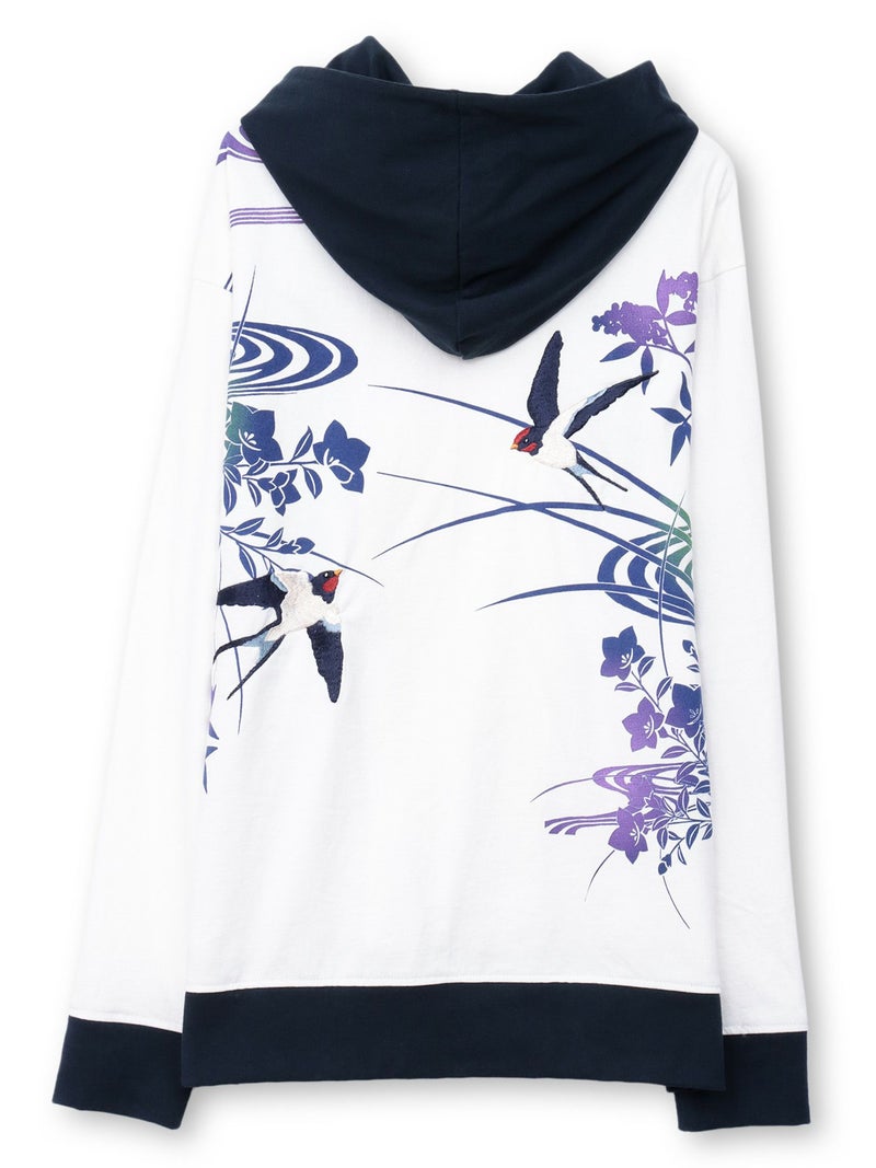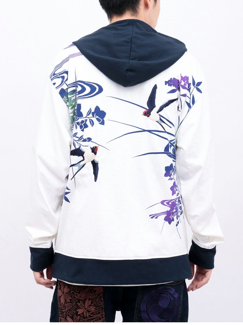 - 【雅結×錦】“ツバメと秋の草花”刺繍入りZIPパーカー〔別注〕