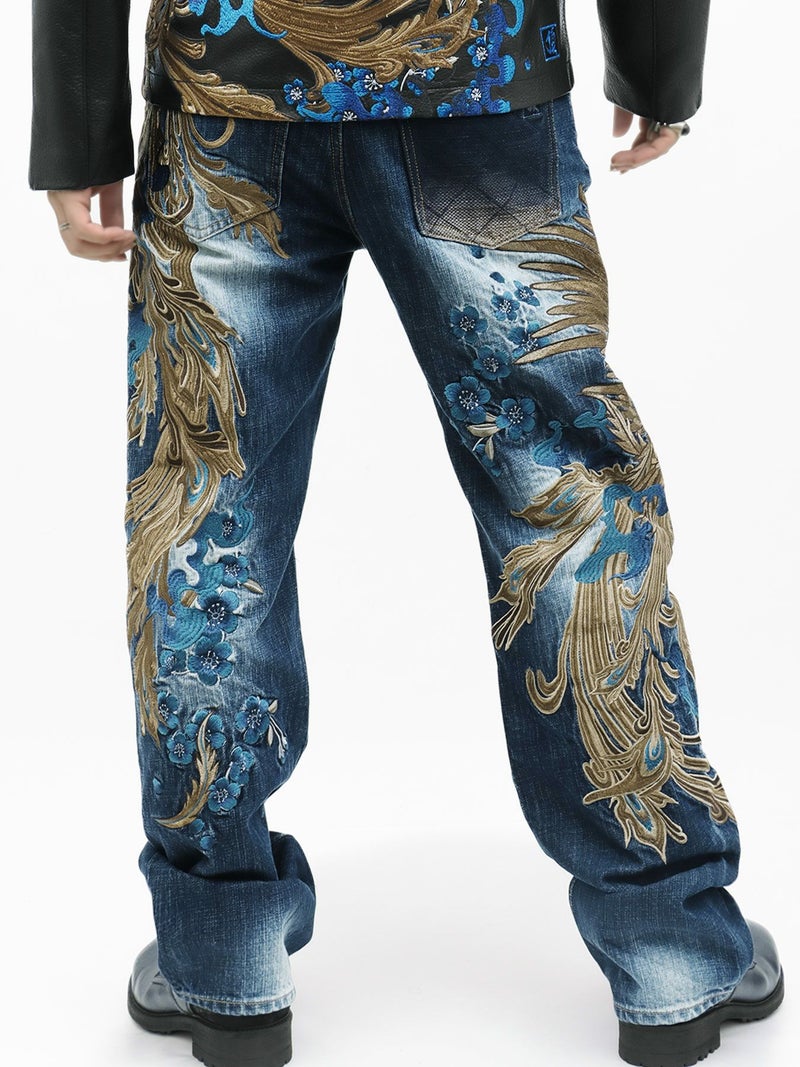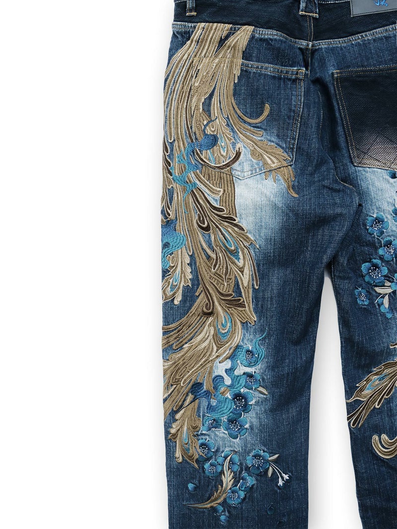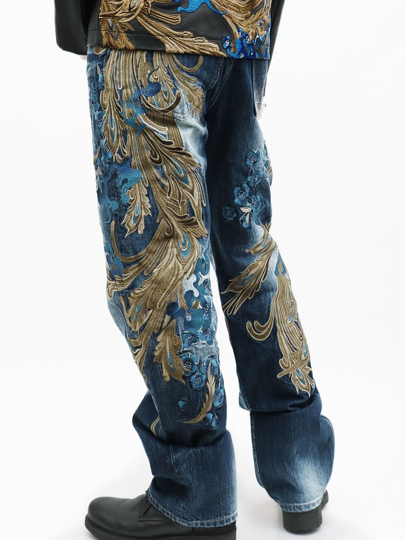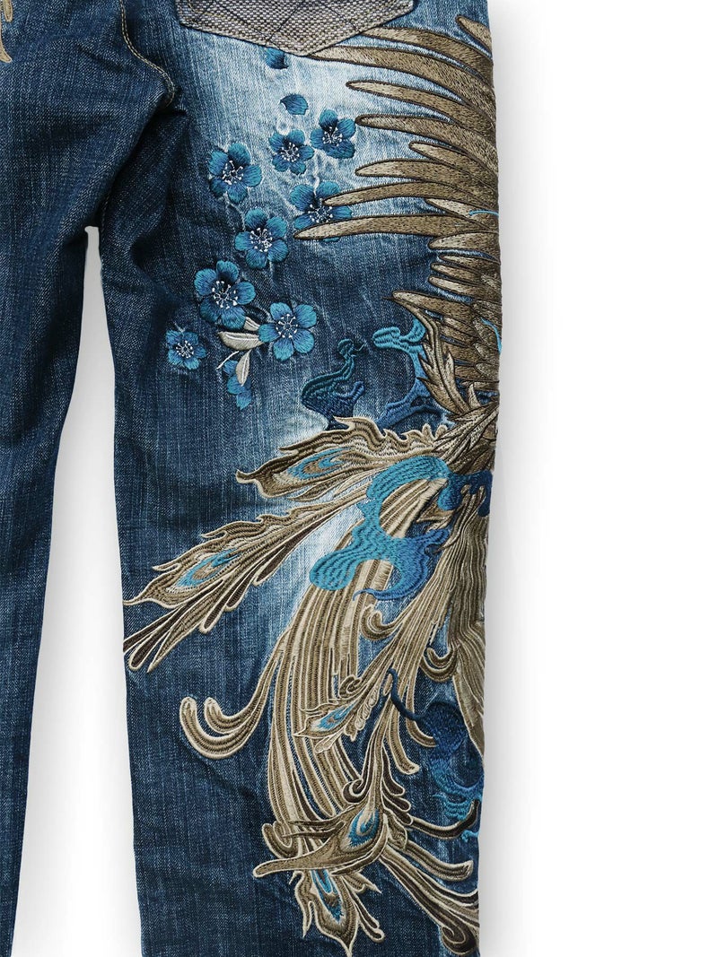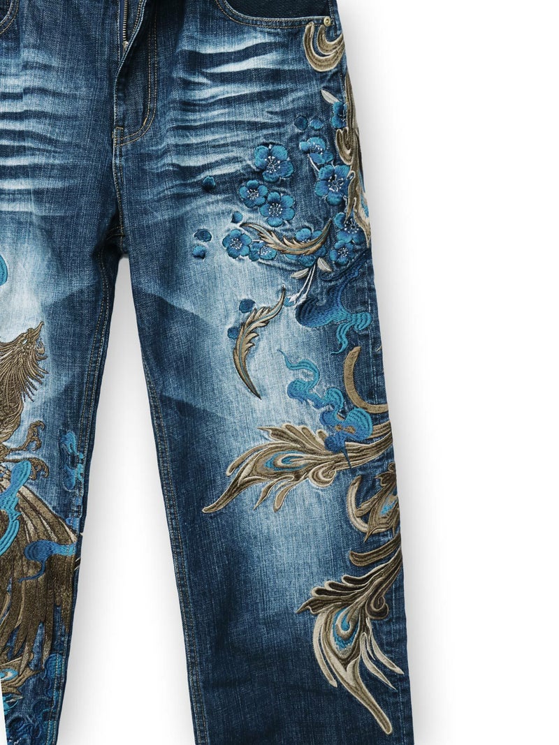 4. 【絡繰魂・頂】“蒼炎”鳳凰総刺繍デニムパンツ〔別注〕