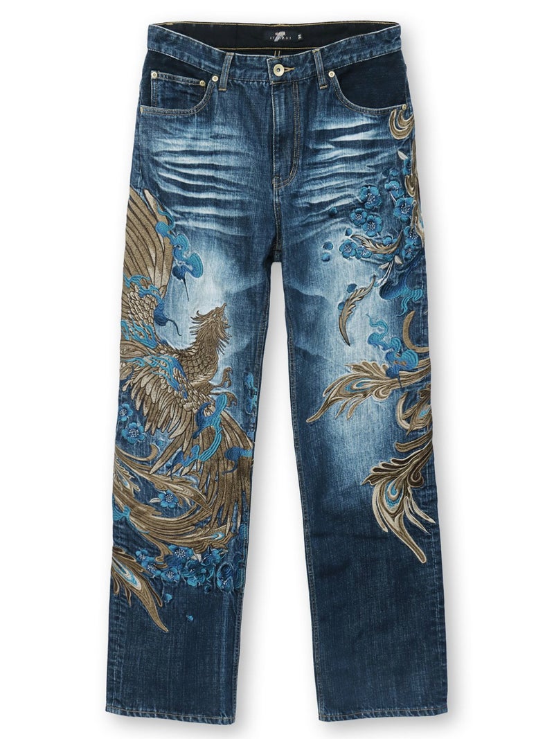 3. 【絡繰魂・頂】“蒼炎”鳳凰総刺繍デニムパンツ〔別注〕