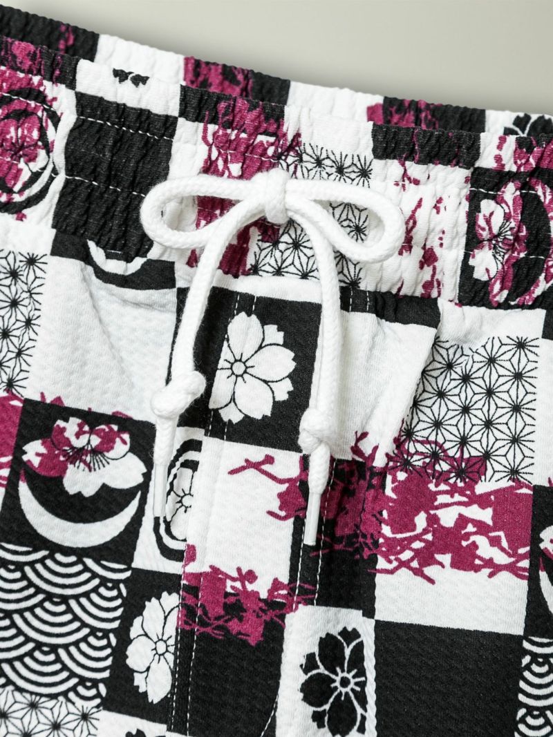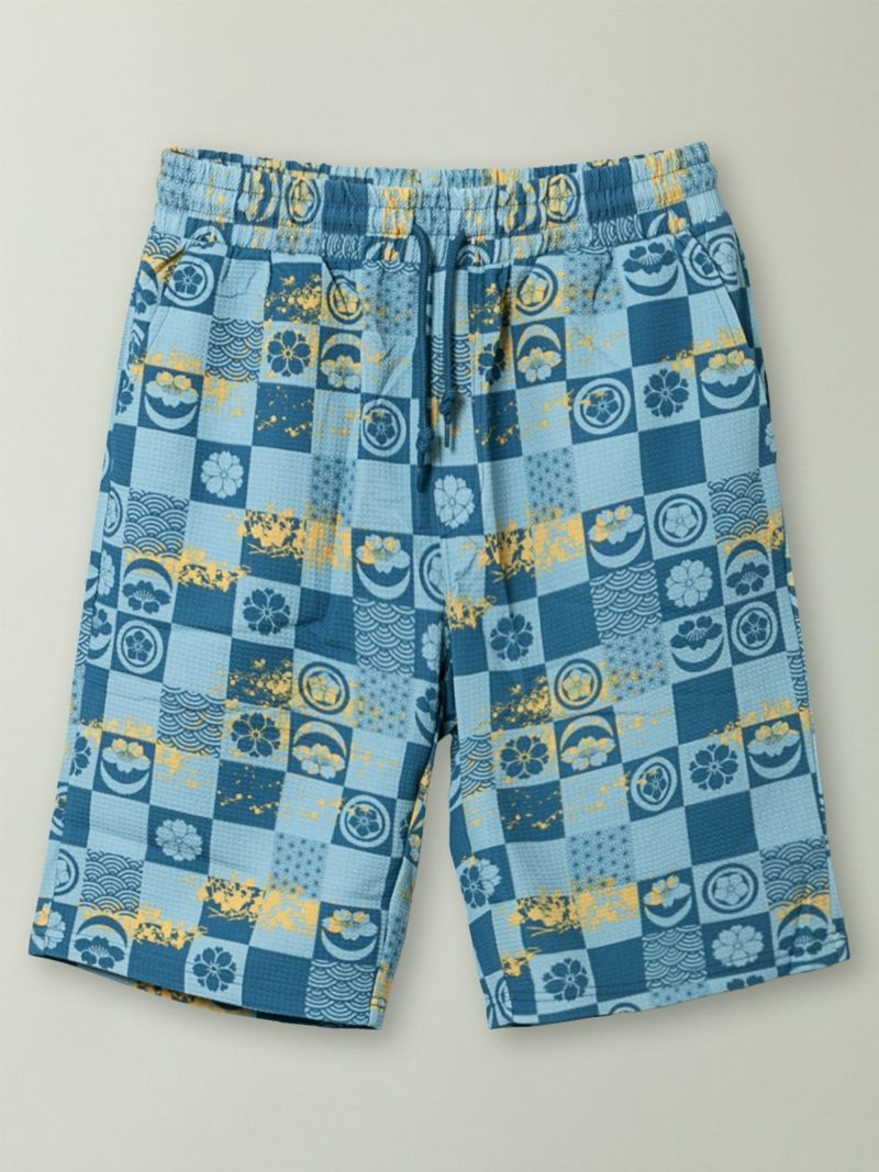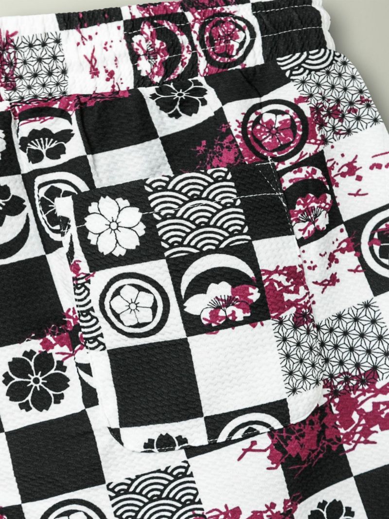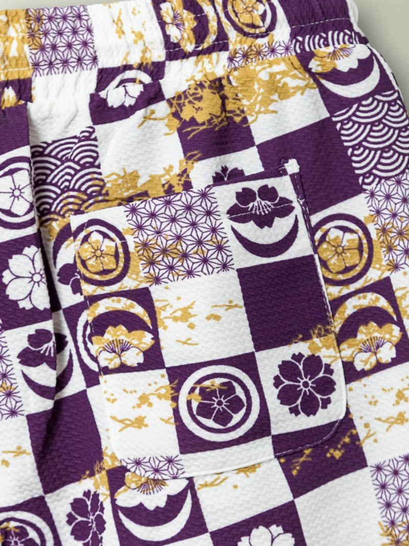 - 【新主己】“市松模様×家紋”総柄プリント ワッフル素材ショーツ≪返品・取寄対応不可≫