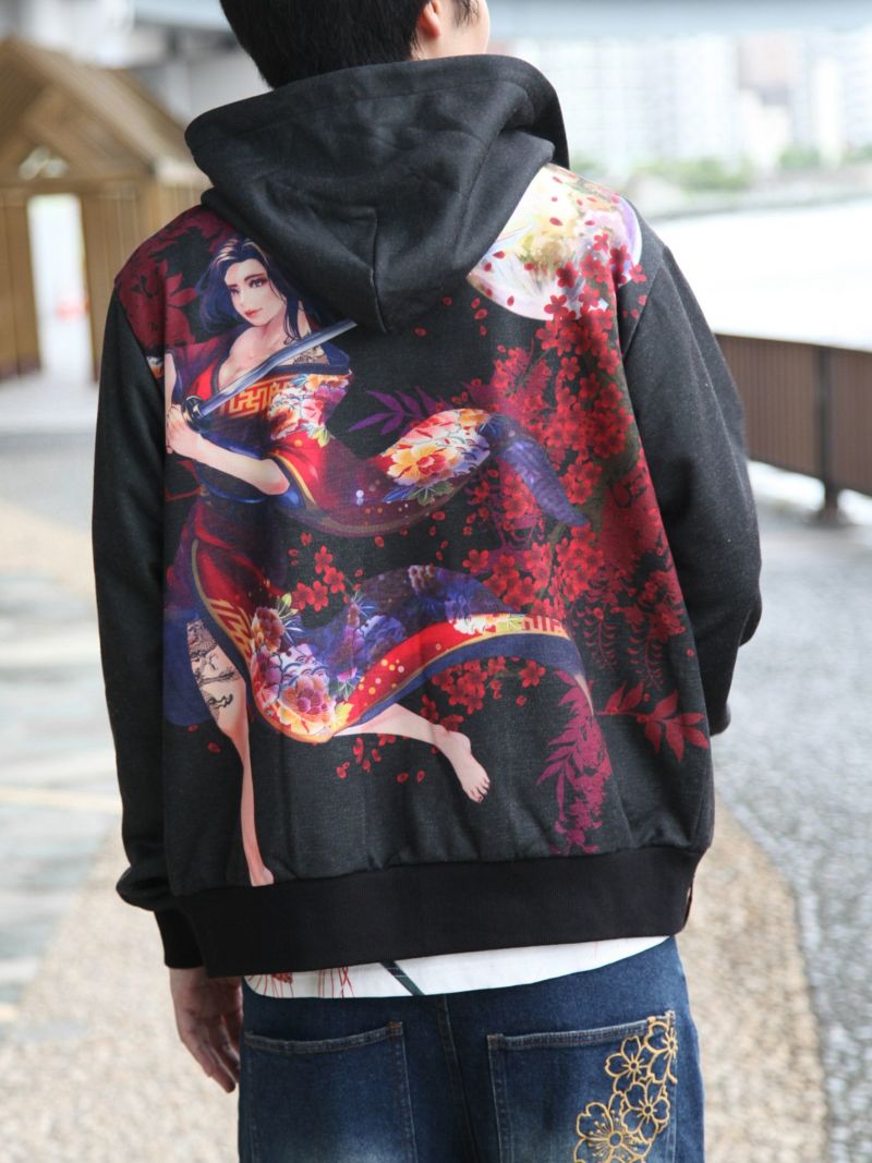 - ≪30%OFF≫【抜刀娘】“葵:暗躍”刺繍入りZIPパーカー≪返品・取寄対応不可≫