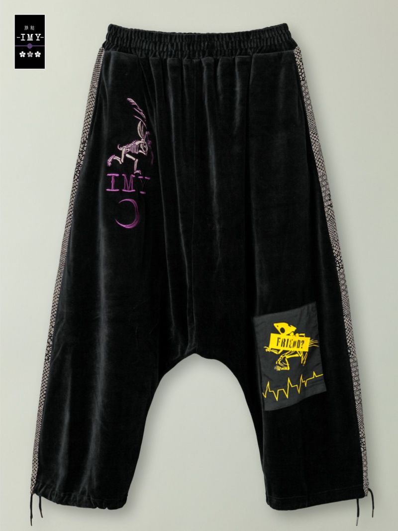 - ≪30%OFF≫【雅結-IMY-】“レントゲン鳥獣戯画”ちりめん切替ベロア素材サルエルパンツ≪返品・取寄対応不可≫