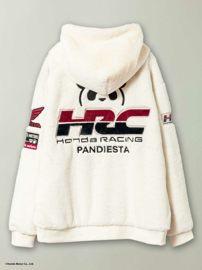 - ≪30%OFF≫【HONDA×PANDIESTA JAPAN】“HRC”刺繍入りフェイクファーZIPパーカー≪返品・取寄対応不可≫