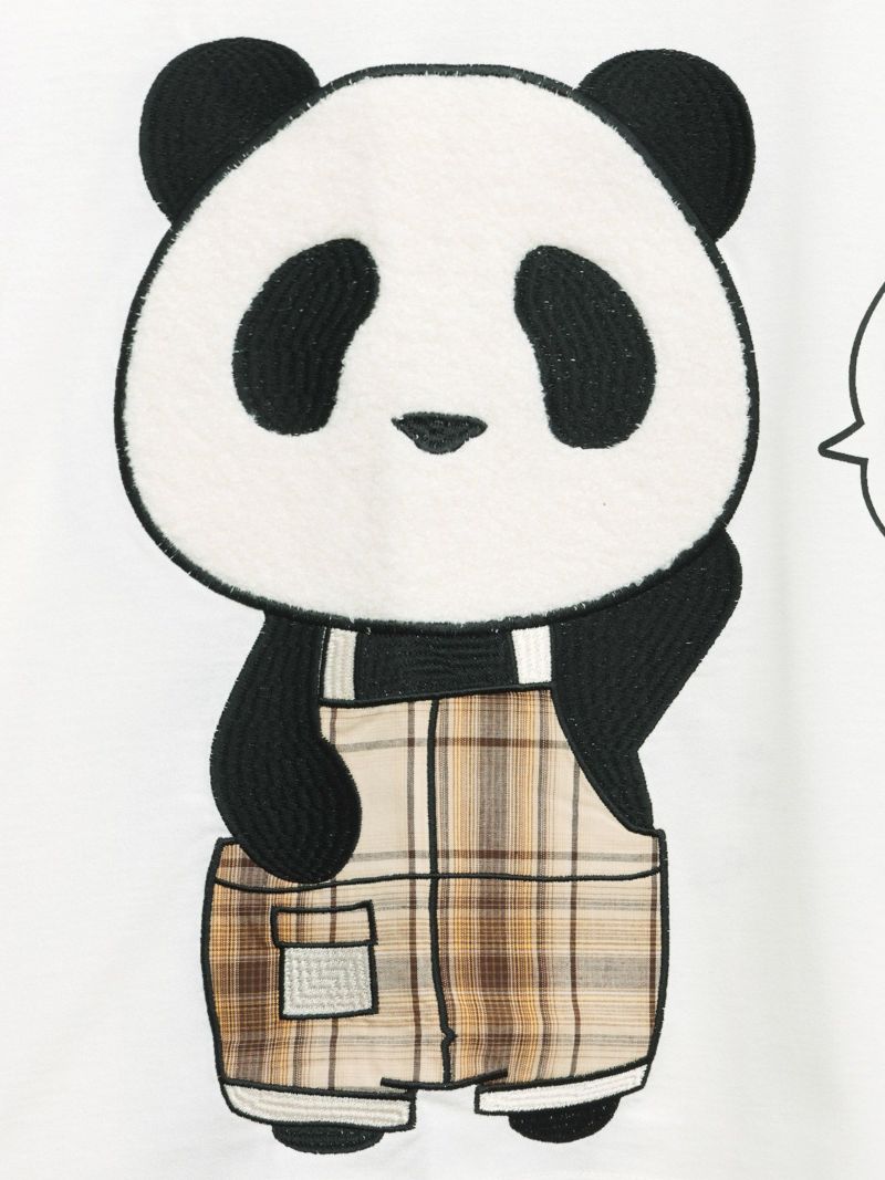 両袖とフード部分、ブランドロゴに切り替えられたチェック生地は、パンダが着ているオーバーオールとお揃いに♪