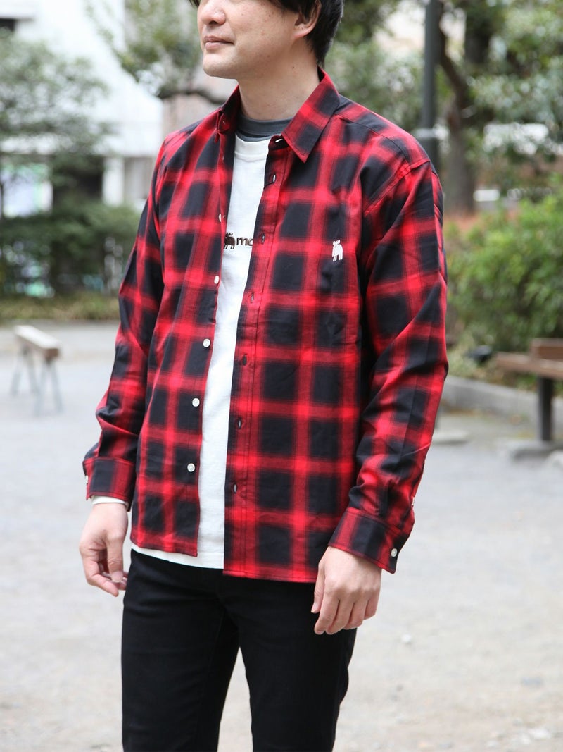 5. ≪30%OFF≫【moz】エルクワンポイント刺繍入りチェックシャツ〔別注〕≪返品・取寄対応不可≫