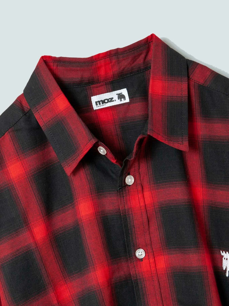 左胸にブランドアイコンのエルクをワンポイント刺繍で落とし込んだ、シンプルなデザインのチェックシャツ。