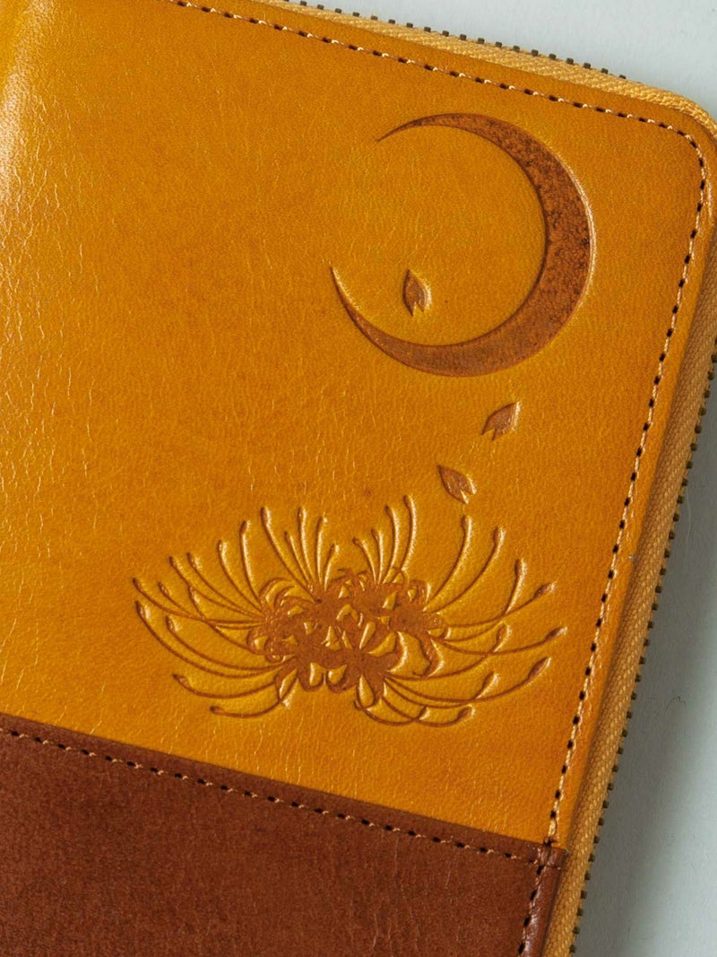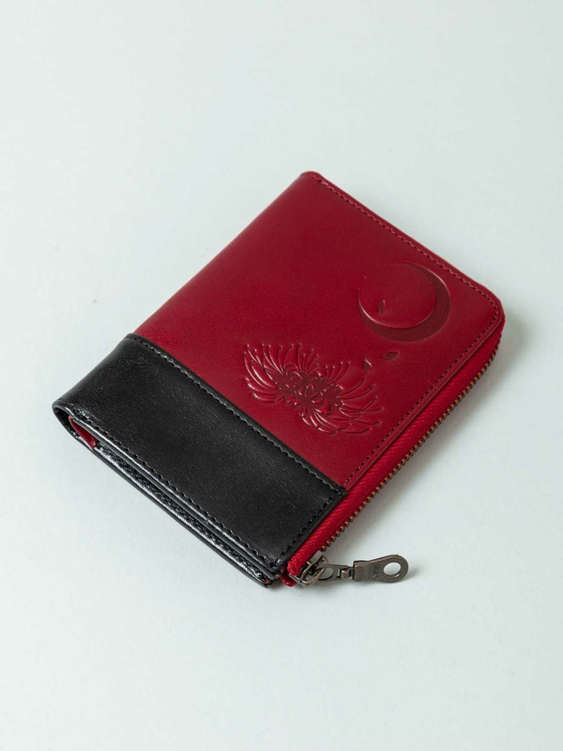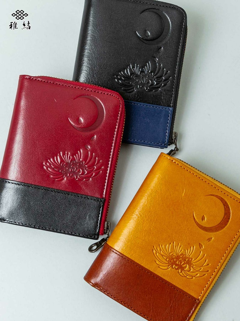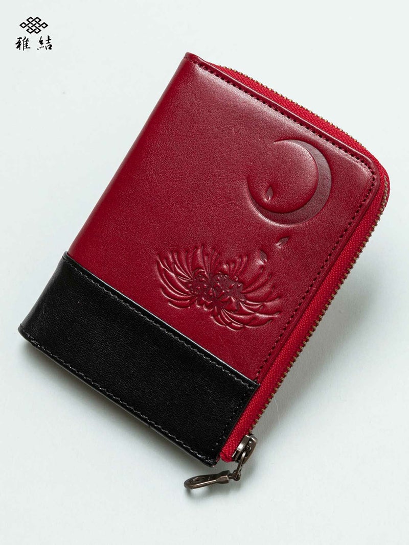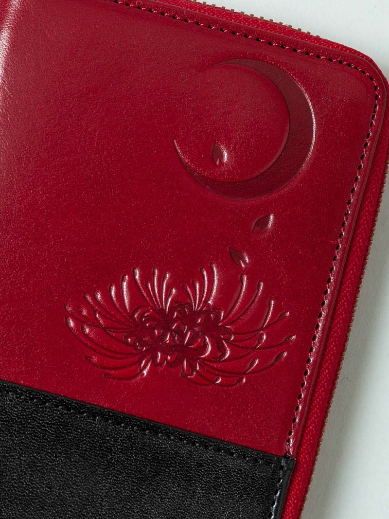 - ≪30%OFF≫【雅結】月夜に彼岸花エンボス加工イタリアンレザー2つ折りZIPウォレット≪返品・取寄対応不可≫