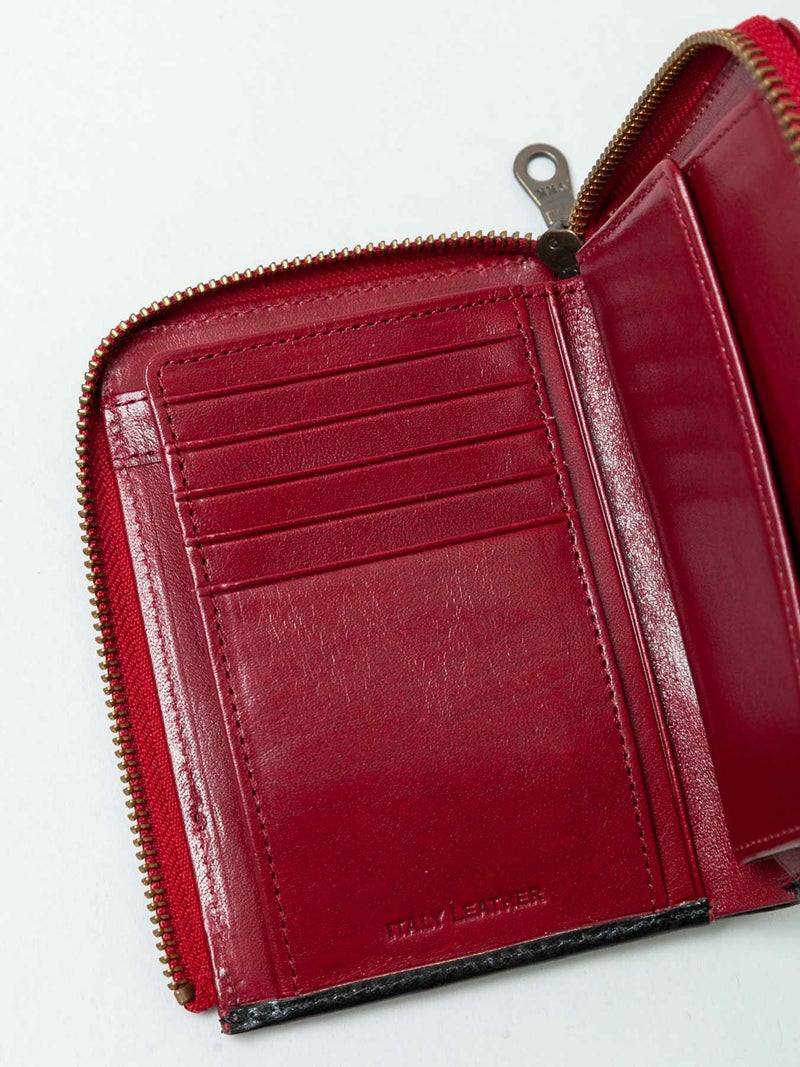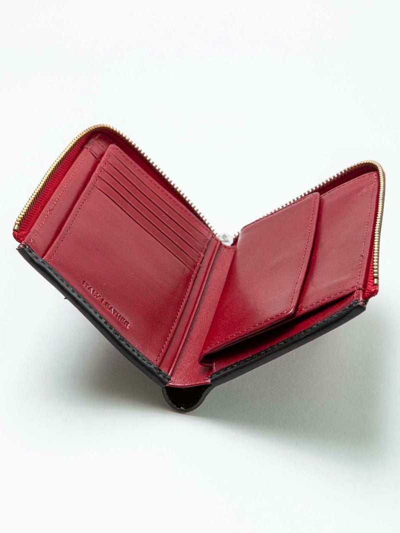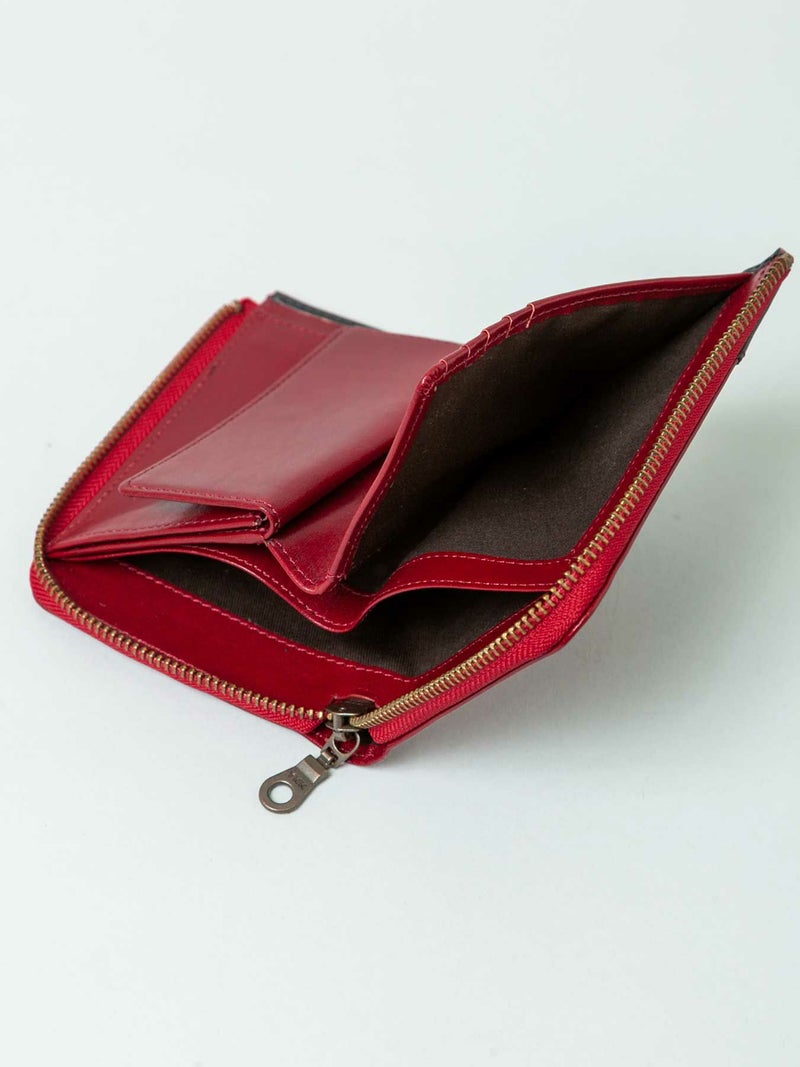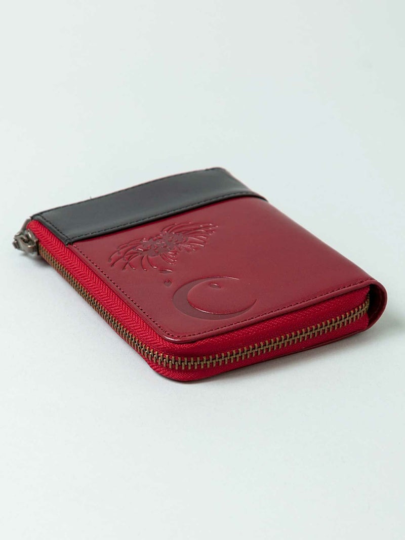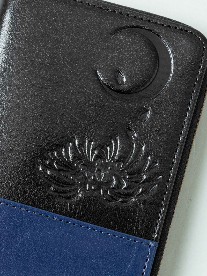 - ≪30%OFF≫【雅結】月夜に彼岸花エンボス加工イタリアンレザー2つ折りZIPウォレット≪返品・取寄対応不可≫